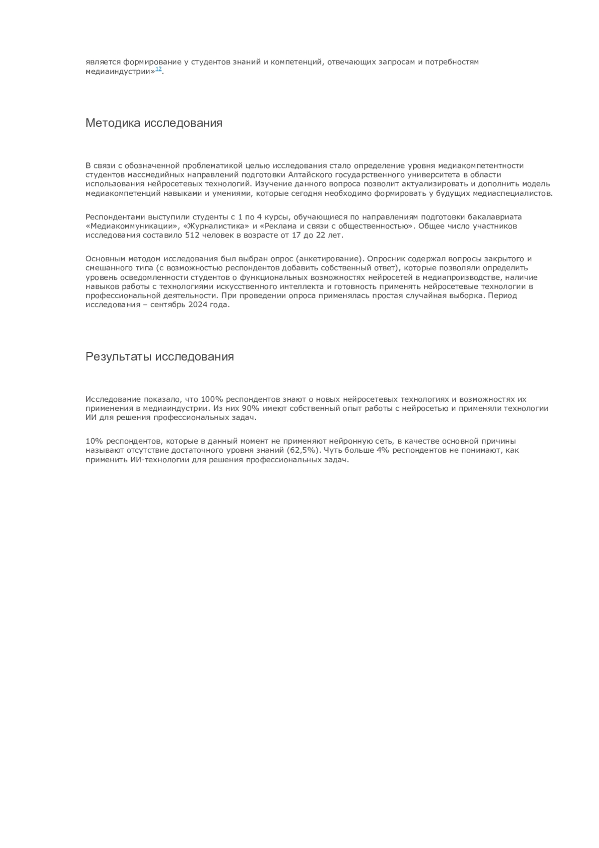 Ключевые фразы: нейросети, медиаграмотность, медиаобразование, медиакомпетентность, социологический опрос