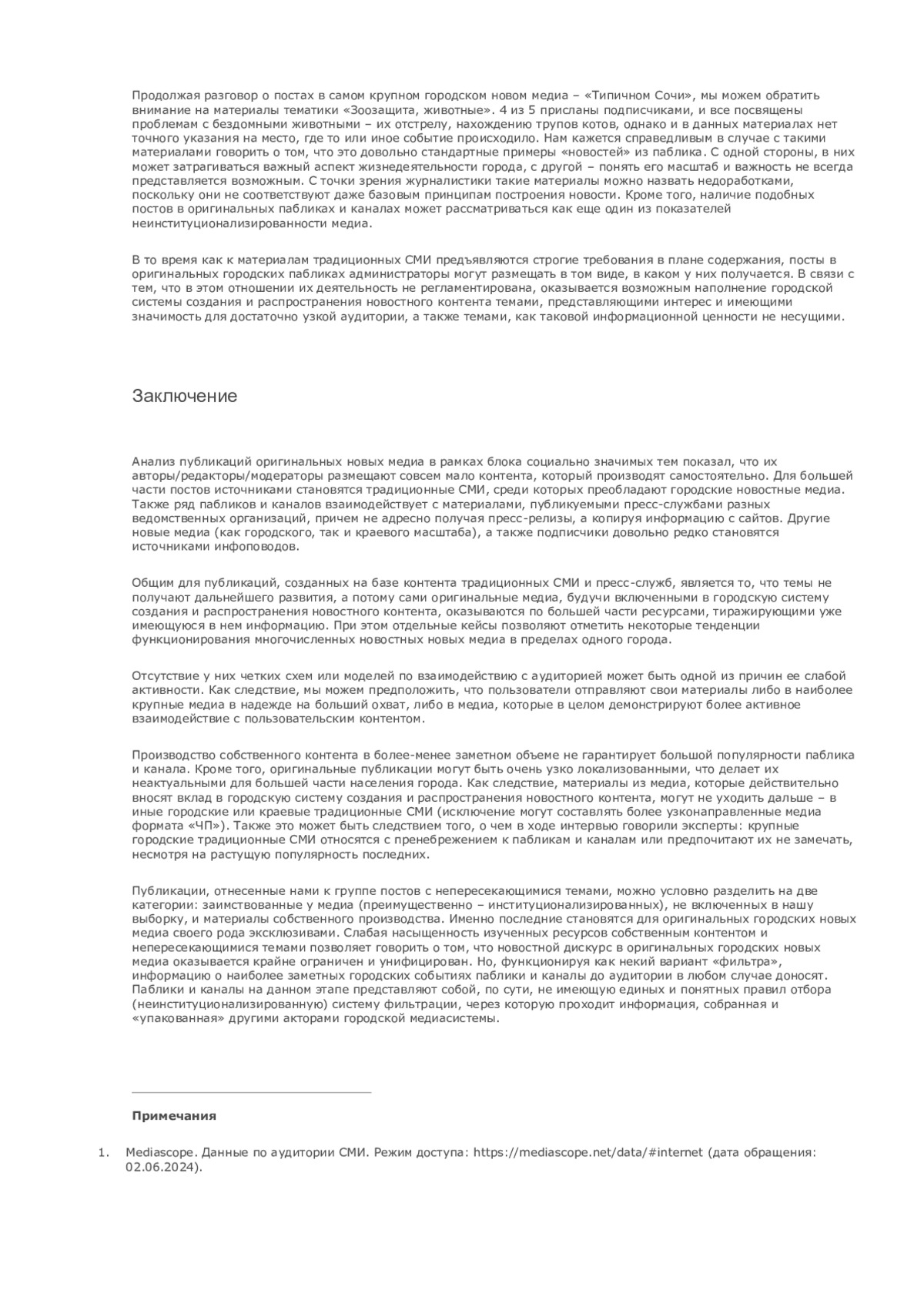 1. Mediascope. Данные по аудитории СМИ. Режим доступа: https://mediascope.net/data/#internet (дата обращения: 02.06.2024).