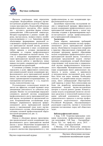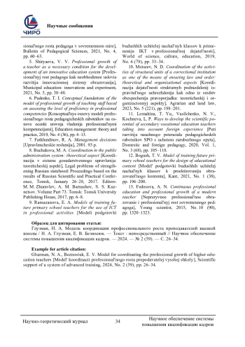 Статья: МОДЕЛЬ КООРДИНАЦИИ ПРОФЕССИОНАЛЬНОГО РОСТА ПРЕПОДАВАТЕЛЕЙ ВЫСШЕЙ ШКОЛЫ (2024)