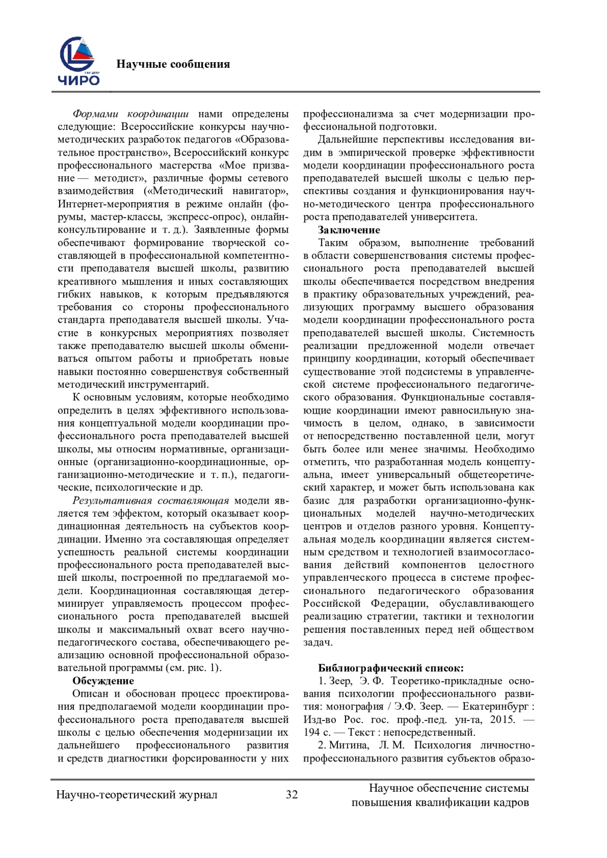 Журнал: НАУЧНОЕ ОБЕСПЕЧЕНИЕ СИСТЕМЫ ПОВЫШЕНИЯ КВАЛИФИКАЦИИ КАДРОВ