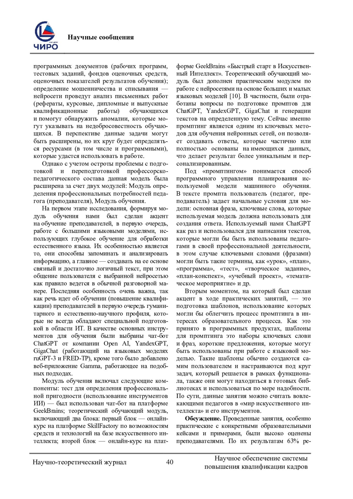 Статья: НЕЙРОСЕТИ - НОВЫЙ ИНСТРУМЕНТ ДЛЯ СИСТЕМЫ ПОВЫШЕНИЯ КВАЛИФИКАЦИИ ПЕДАГОГИЧЕСКИХ КАДРОВ (2024)