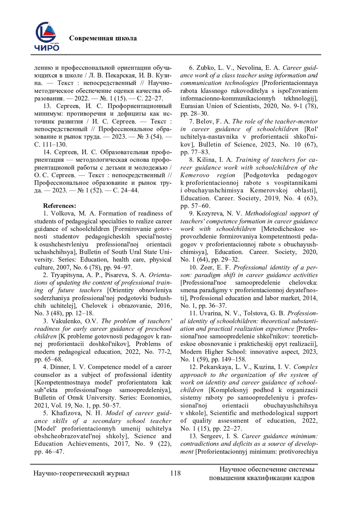 БУРОВ К. С. ОБНОВЛЕНИЕ СОДЕРЖАНИЯ ДЕЯТЕЛЬНОСТИ ПЕДАГОГОВ ОБЩЕОБРАЗОВАТЕЛЬНЫХ ОРГАНИЗАЦИЙ В РЕШЕНИИ ЗАДАЧ ПРОФЕССИОНАЛЬНОЙ ОРИЕНТАЦИИ ОБУЧАЮЩИХСЯ // НАУЧНОЕ ОБЕСПЕЧЕНИЕ СИСТЕМЫ ПОВЫШЕНИЯ КВАЛИФИКАЦИИ КАДРОВ. 2024. № 2 (59)