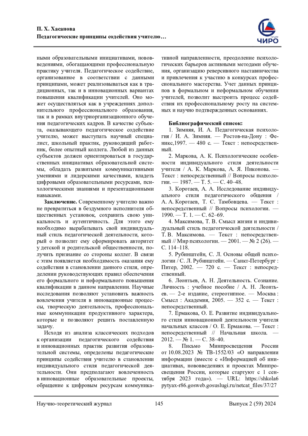 11. Малинин, В. А. Наставничество как действенная форма становления и развития личности молодого учителя / В. А. Малинин, Ф. В. Повшедная, О. В. Лебедева, А. В. Пугачев. - Текст: электронный // Вестник Мининского университета. - 2023. - Т. l. 11, № 1 (42). - URL: https://goo.su/UISK4 (дата обращения: 12.05.2024). EDN: HRCKNH
