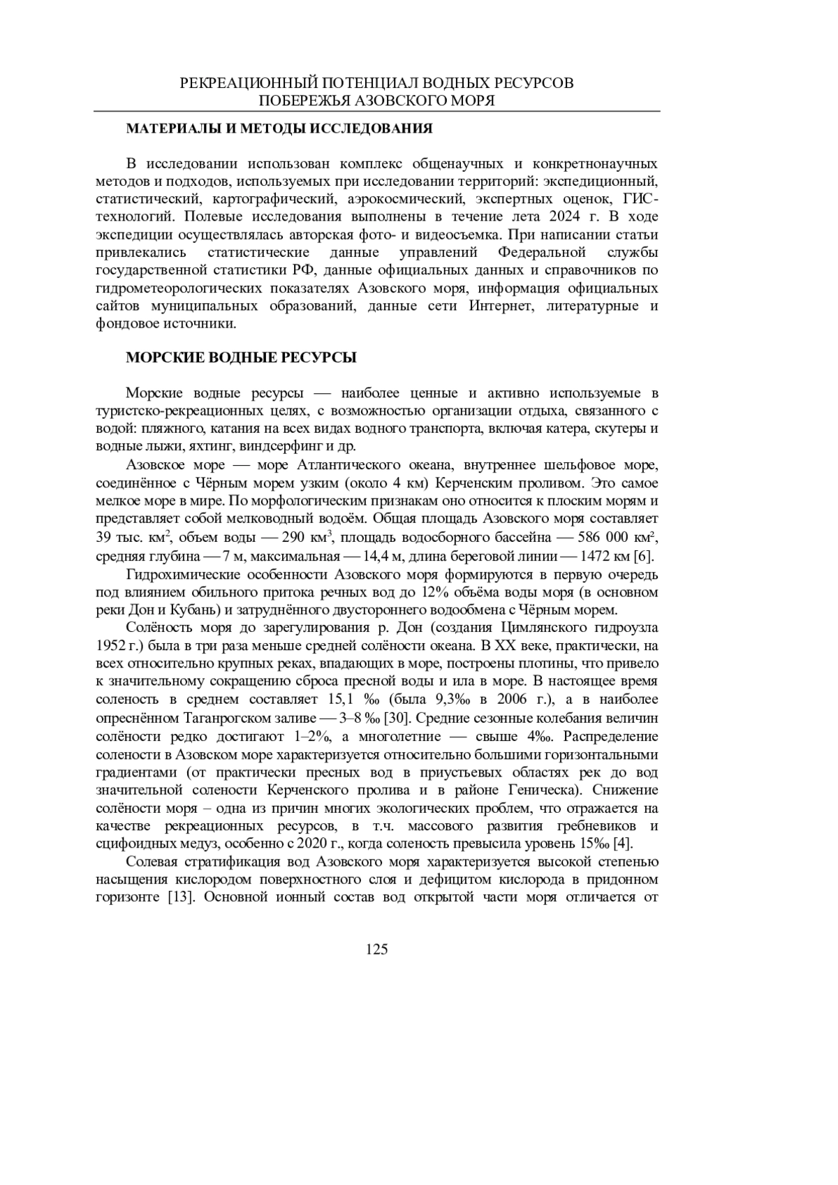 Статья: РЕКРЕАЦИОННЫЙ ПОТЕНЦИАЛ ВОДНЫХ РЕСУРСОВ ПОБЕРЕЖЬЯ АЗОВСКОГО МОРЯ (2025)