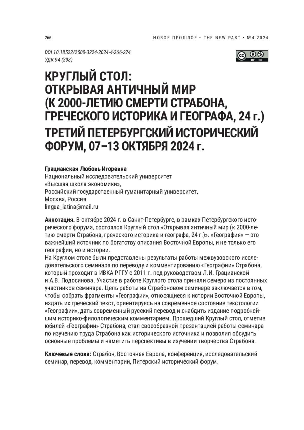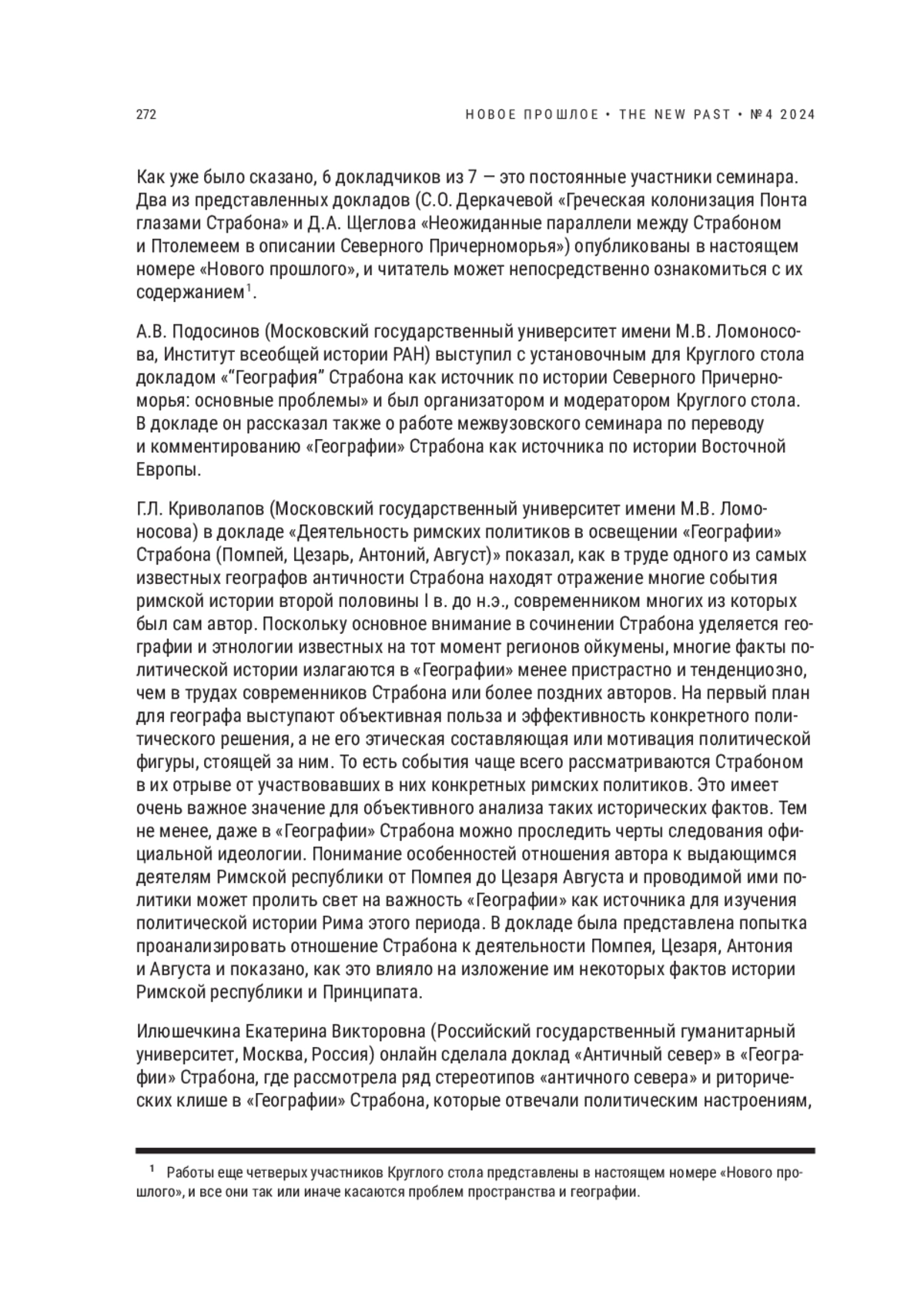 В 2024 г. отмечается юбилей — 2000-летие со дня окончания труда Страбона «География». Это произведение Страбона — самое значимое, наряду с Геродотом, сочинение о географии древней Восточной Европы. Поэтому закономерно внимание к этой дате, результатом чего является данный выпуск журнала. Отзыв на книгу А. В. Подосинова «Ex oriente lux!» — символическое введение в этот номер журнала с названием «География».