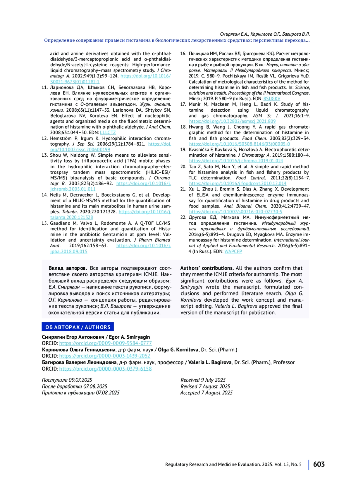 16. Почицкая ИМ, Рослик ВЛ, Григорьева ЮД. Расчет метрологических характеристик методики определения гистамина в рыбе и рыбной продукции. В кн.: Наука, питание и здоровье. Материалы II Международного конгресса. Минск; 2019. С. 580-9.