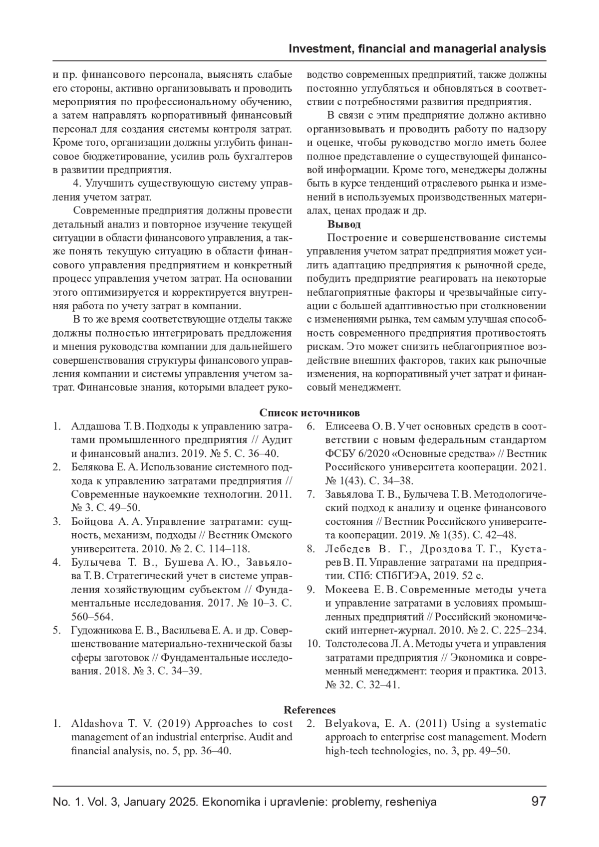 Статья: АНАЛИЗ ПРИМЕНЕНИЯ УЧЕТА ЗАТРАТ В УПРАВЛЕНИИ ФИНАНСАМИ ПРЕДПРИЯТИЯ (2025)