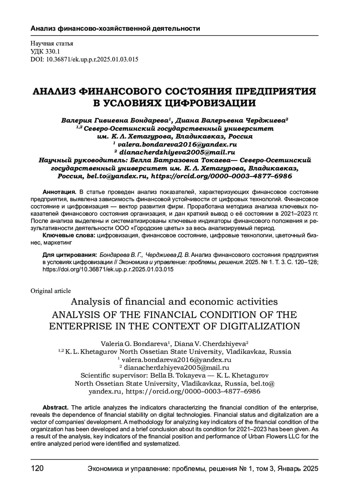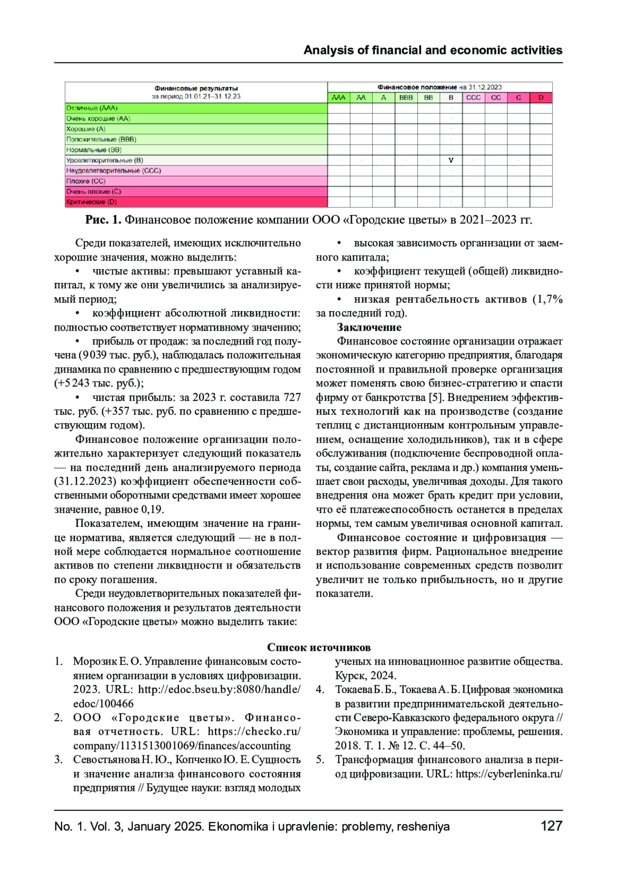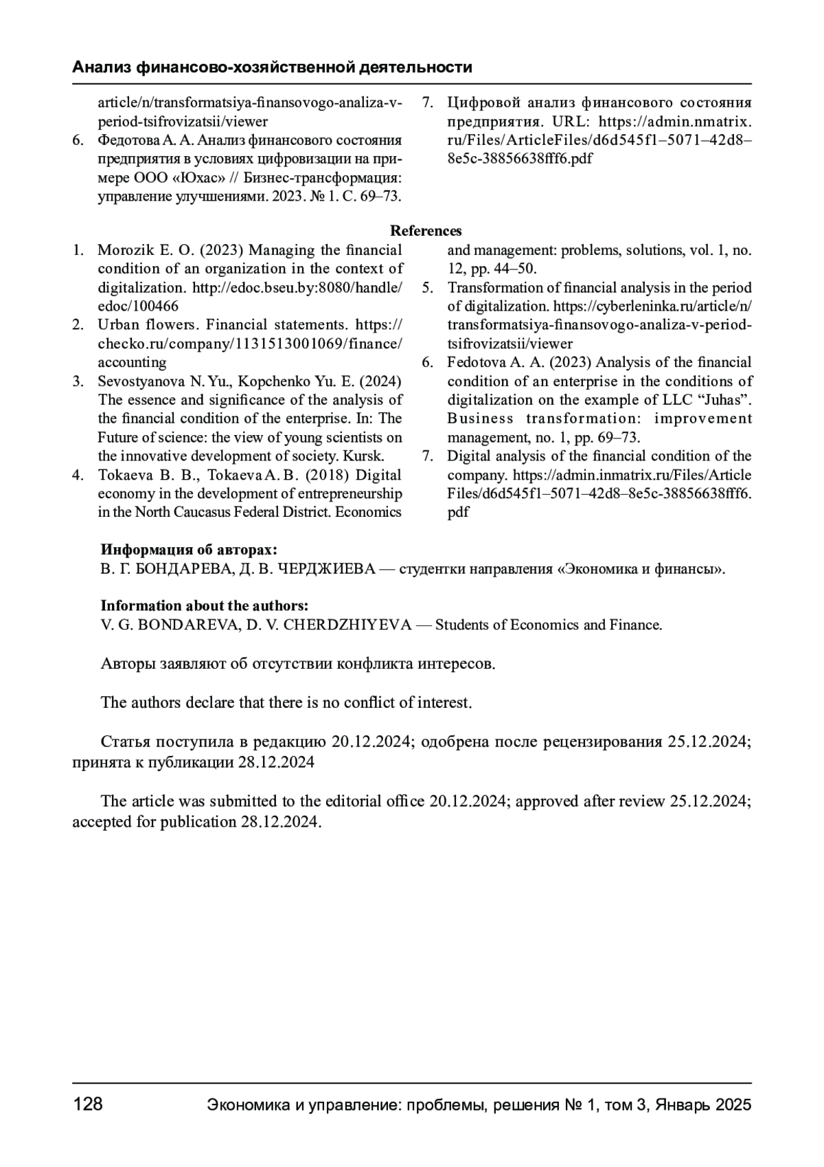1. Морозик Е. О. Управление финансовым состоянием организации в условиях цифровизации.2023. URL: http://edoc.bseu.by:8080/handle/edoc/100466.