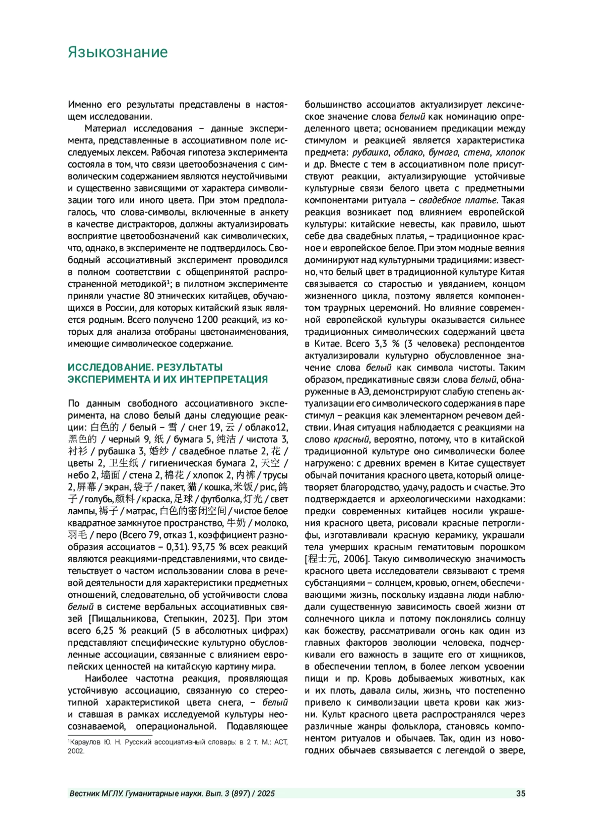 8. Пищальникова В. А., Степыкин Н. И. Речевое действие как средство реализации психологического значения слова (на материале ассоциативного поля лексемы гражданин) // Вестник Московского государственного лингвистического университета. Гуманитарные науки. 2023. Вып. 9 (877). С. 41-49. EDN: BHFEYH