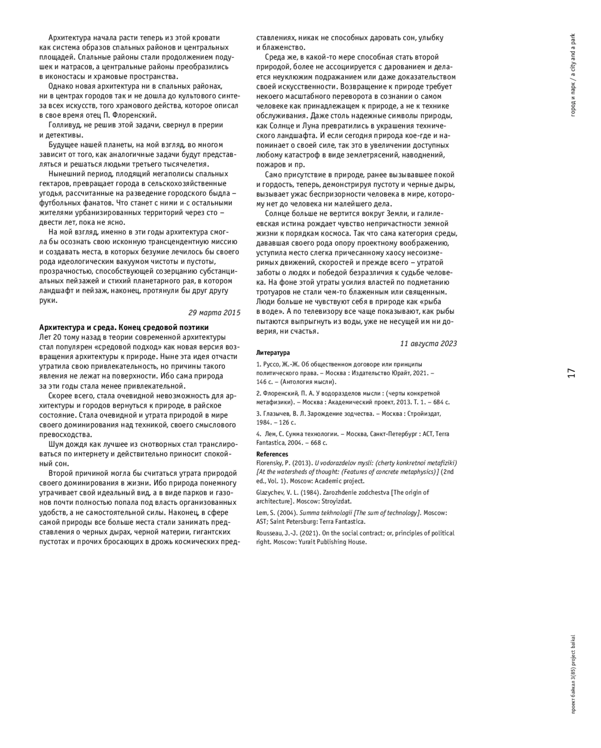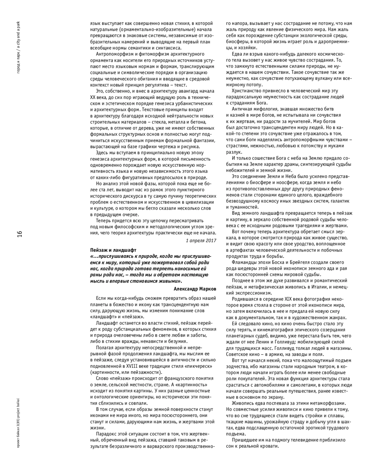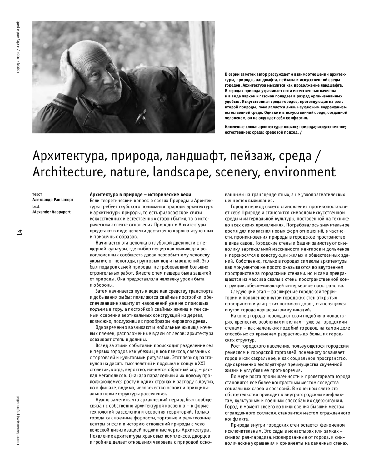 Летний номер пб – самое время поговорить о взаимоотношениях природы, ландшафта, пейзажа и искусственной среды города.