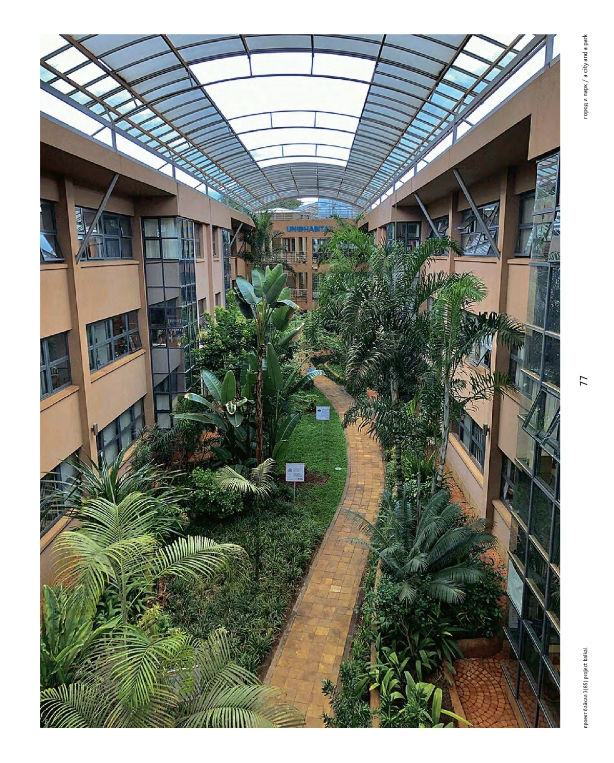 Парк рассматривается как результат диалога человека с природой, такой же продукт урбанизации, как и город. Его природа амбивалентна и по отношению к городу, и в отношении стихии, что делает его инструментом коммуникации природы и культуры, средством их примирения. В настоящее время городские культура и образ жизни уходят в город-парк, сабербию, и идея города-сада становится доминантной идеей градостроительной практики. Мегасооружение и город-сад создают сбалансированную систему, которая является образцом архитектуры будущего.