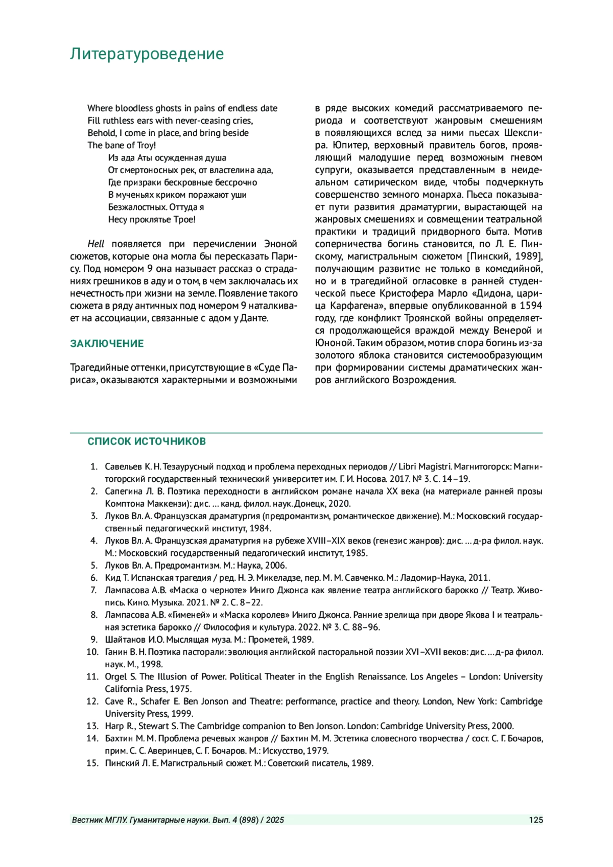 10. Ганин В. Н. Поэтика пасторали: эволюция английской пасторальной поэзии XVI-XVII веков: дис. … д-ра филол. наук. М., 1998. EDN: WWKUJW
