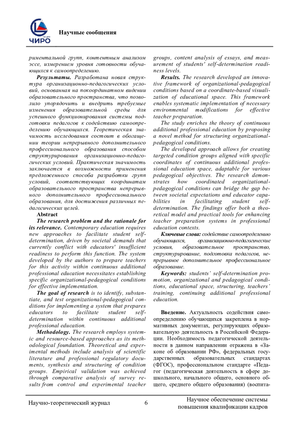 Ключевые фразы: содействие самоопределению обучающихся, организационно-педагогические условия, образовательное пространство, структурирование, ПОДГОТОВКА ПЕДАГОГОВ, непрерывное дополнительное профессиональное образование
