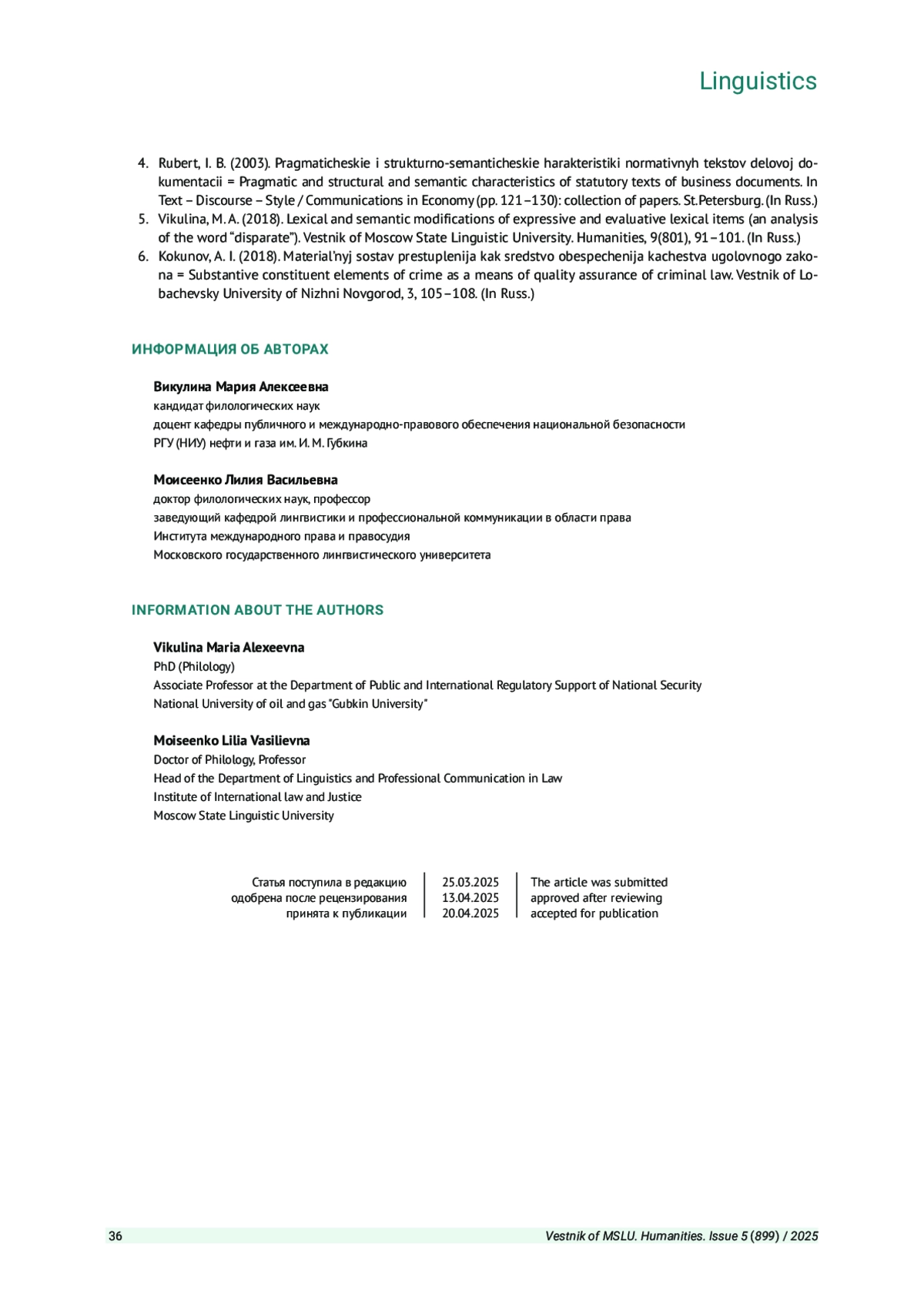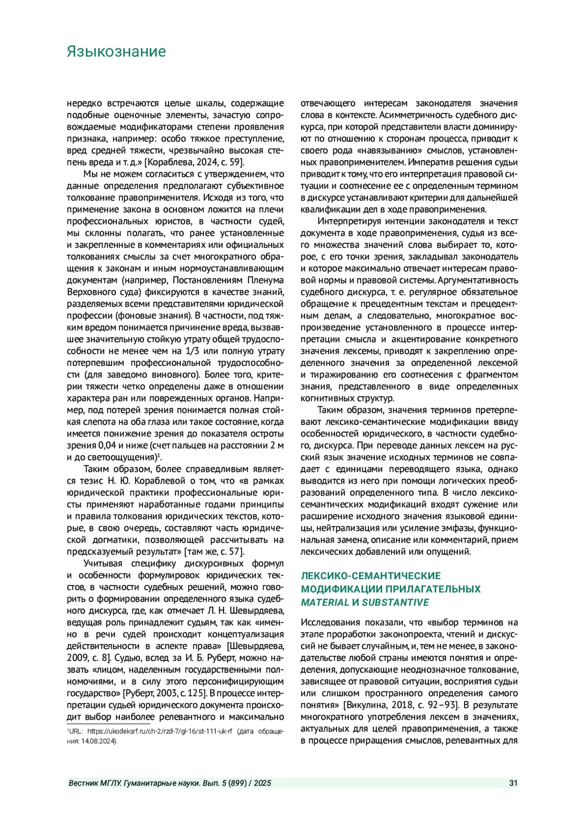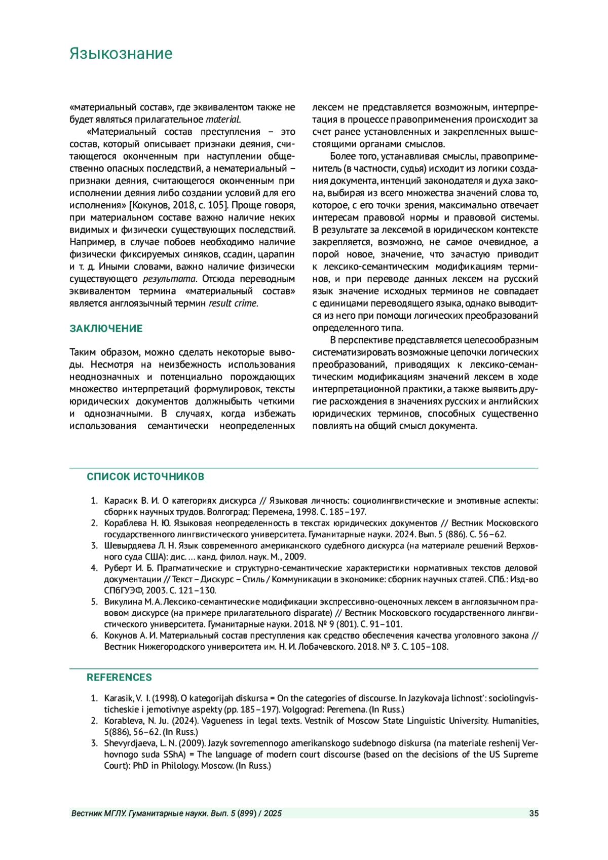 2. Кораблева Н. Ю. Языковая неопределенность в текстах юридических документов // Вестник Московского государственного лингвистического университета. Гуманитарные науки. 2024. Вып. 5 (886). С. 56-62. EDN: EJKZIS