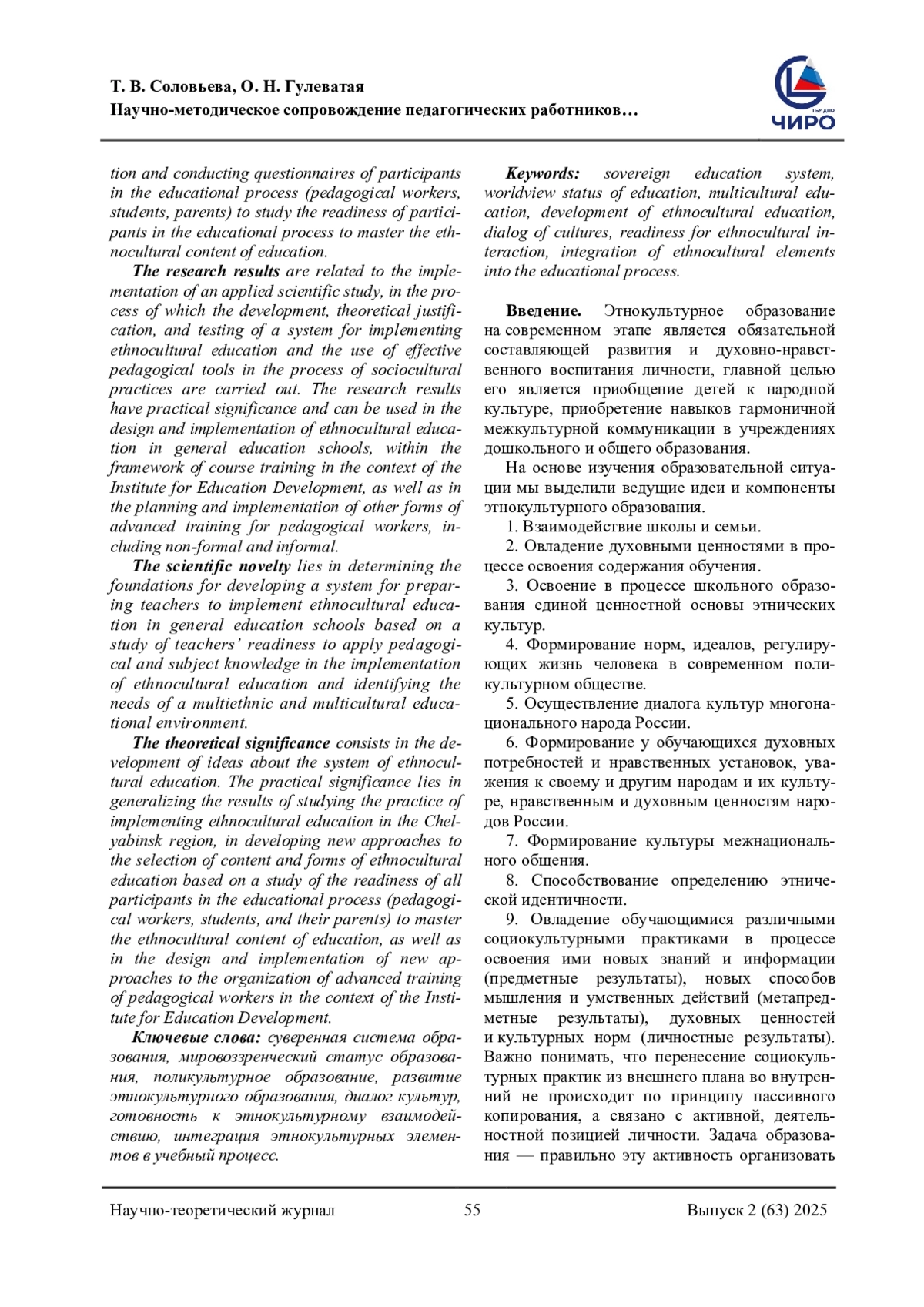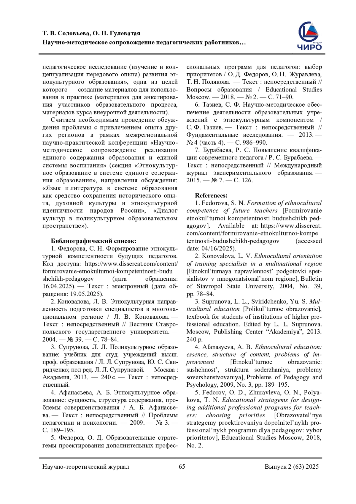 1. Федорова, С. Н. Формирование этнокультурной компетентности будущих педагогов. Код доступа: https://www.dissercat.com/content/formirovanie-etnokulturnoi-kompetentnosti-budushchikh-pedagogov (дата обращения: 16.04.2025). - Текст: электронный (дата обращения: 19.05.2025).