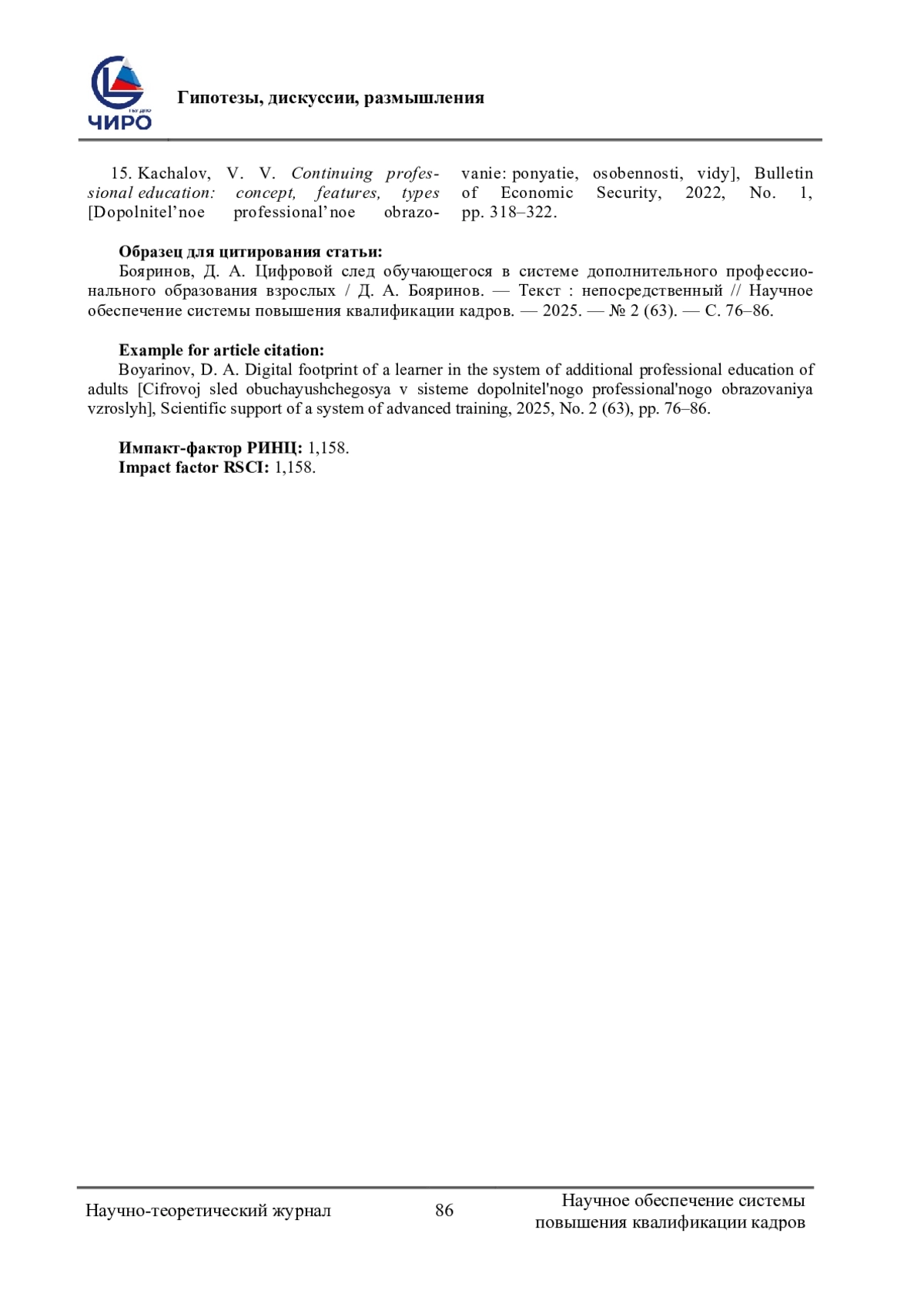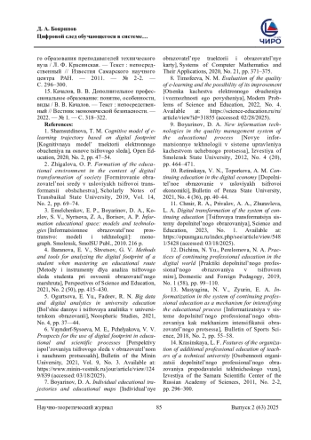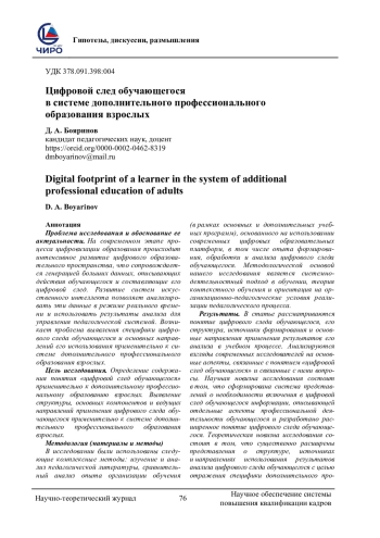 БОЯРИНОВ Д. А. ЦИФРОВОЙ СЛЕД ОБУЧАЮЩЕГОСЯ В СИСТЕМЕ ДОПОЛНИТЕЛЬНОГО ПРОФЕССИОНАЛЬНОГО ОБРАЗОВАНИЯ ВЗРОСЛЫХ // НАУЧНОЕ ОБЕСПЕЧЕНИЕ СИСТЕМЫ ПОВЫШЕНИЯ КВАЛИФИКАЦИИ КАДРОВ. 2025. № 2 (63) (14 СТ.)