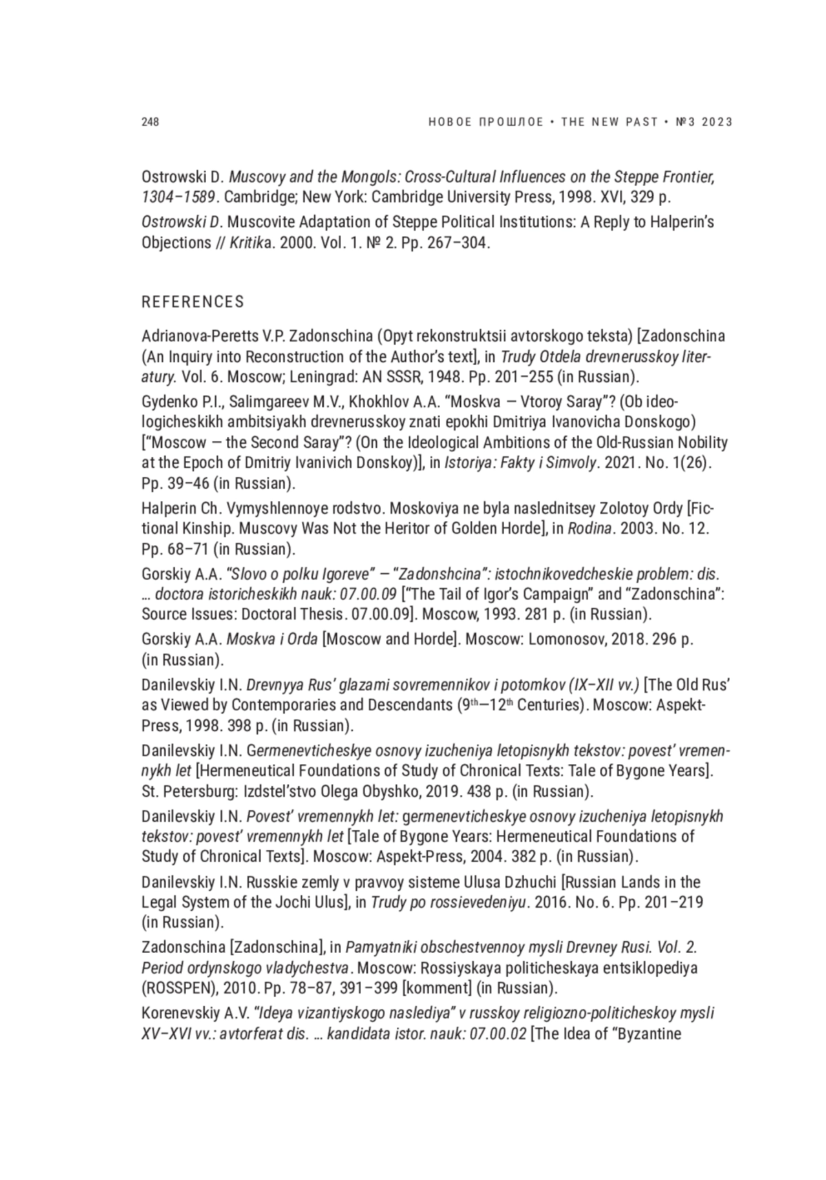 ГАЙДЕНКО П. И. ОТ "ОРДЫ ЗАЛЕССКОЙ" К "ТРЕТЬЕМУ РИМУ" // НОВОЕ ПРОШЛОЕ. 2023. № 3