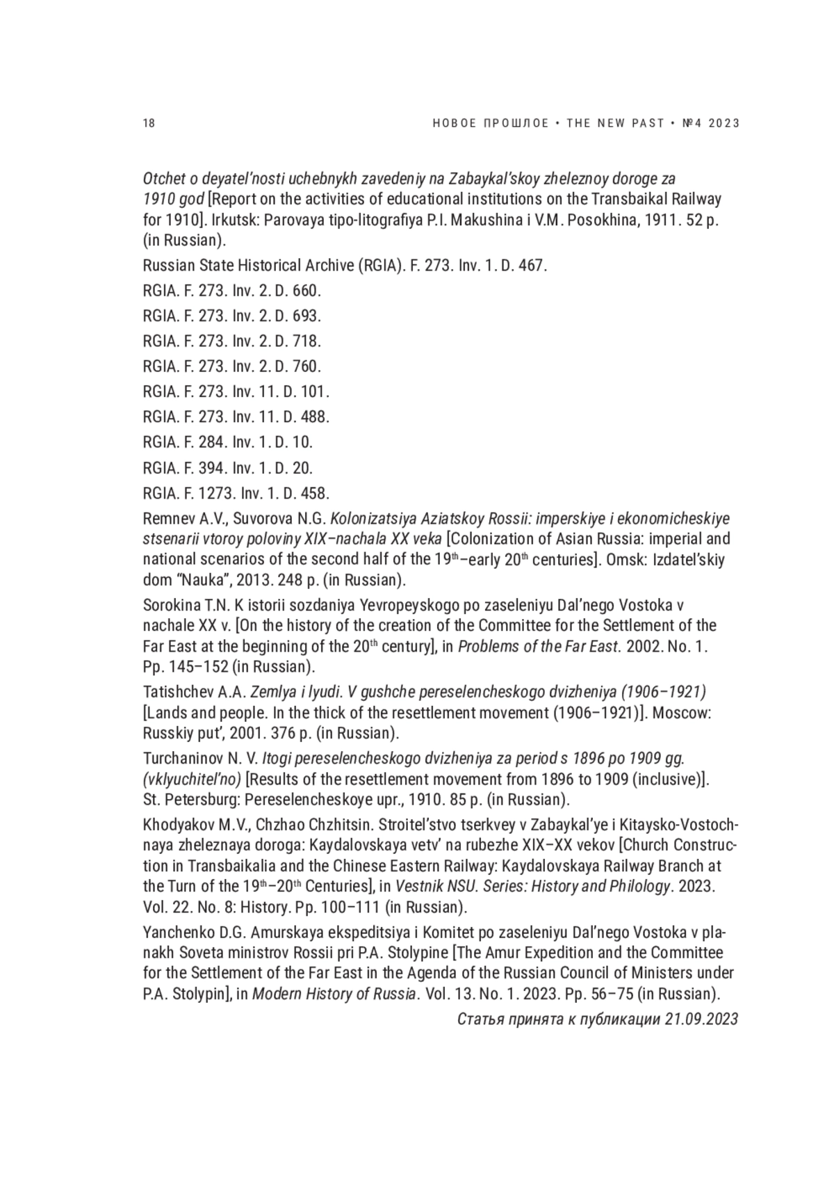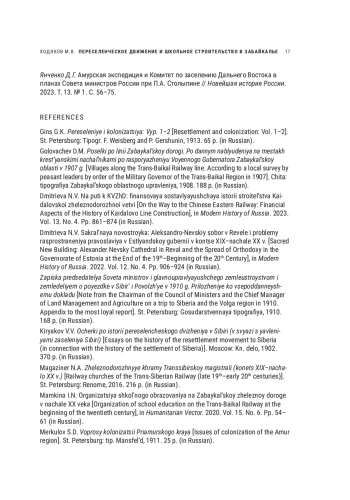 Статья: ПЕРЕСЕЛЕНЧЕСКОЕ ДВИЖЕНИЕ И ШКОЛЬНОЕ СТРОИТЕЛЬСТВО В ЗАБАЙКАЛЬЕ В НАЧАЛЕ ХХ В. (2023)