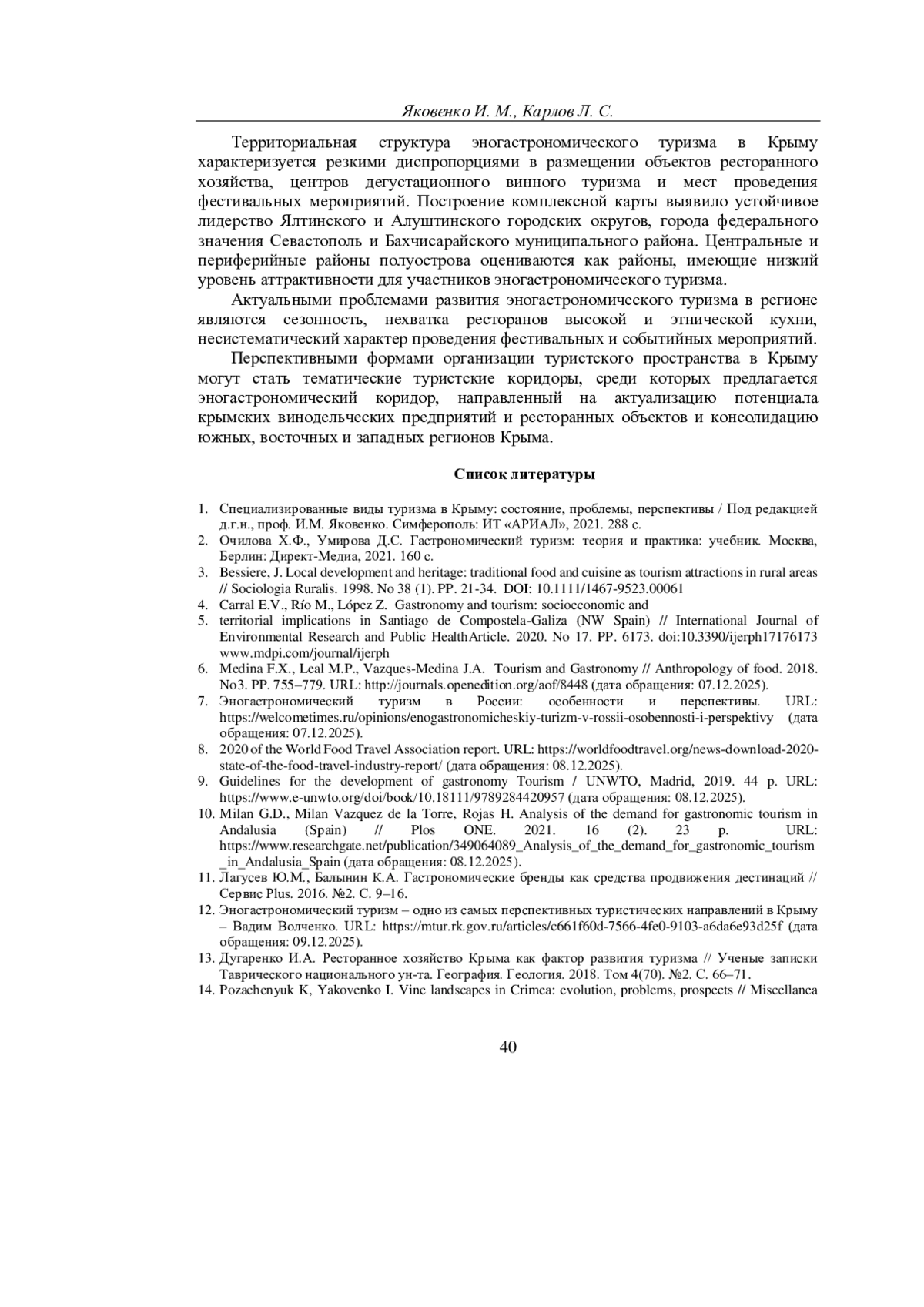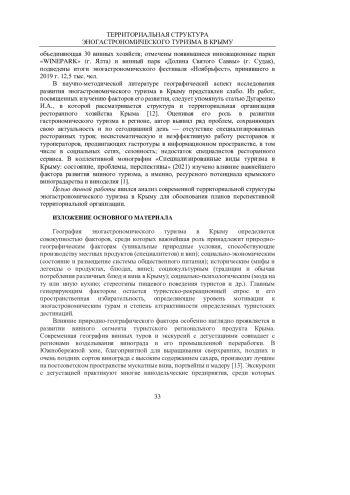 Статья: ТЕРРИТОРИАЛЬНАЯ СТРУКТУРА ЭНОГАСТРОНОМИЧЕСКОГО ТУРИЗМА В КРЫМУ (2025)