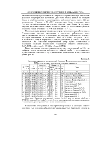Представлены новые результаты изучения и анализа спектральных, кинематических, динамических и энергетических характеристик очагов землетрясений Крымско-Черноморского региона по данным сейсмического мониторинга сетью станций Крыма в 2024 году. Кинематические очаговые параметры восстановлены для двух наиболее сильных землетрясений 17 января с M w = 3.8 и 11 октября с Mw = 4.9 по данным решения фокального механизма в рамках дислокационной модели двойного диполя. Спектральные, динамические и энергетические параметры очагов ( f 0, М 0, r 0,,, ησ, r, ū, E u и M w) изучены для 12 землетрясений по амплитудным спектрам объемных сейсмических волн с использованием теоретической дислокационной модели Бруна (ω-2). Дается анализ полученных результатов.