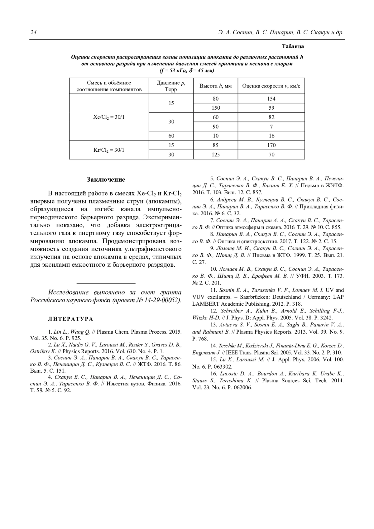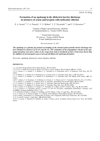 Статья: Апокамп на основе барьерного разряда в смесях ксенона и криптона с молекулярным хлором (2017)