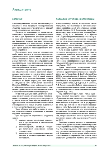 Прежде всего неологизация достаточно широко используется журналистами и медиатехнологами не только для привлечения внимания аудитории, но также для фрейминга медийной повестки, которая формирует сознание аудитории посредством информирования ее о новых явлениях в обществе и впоследствии создания смыслового фрейма, который служит образцом мировоззренческого отношения к проблеме.