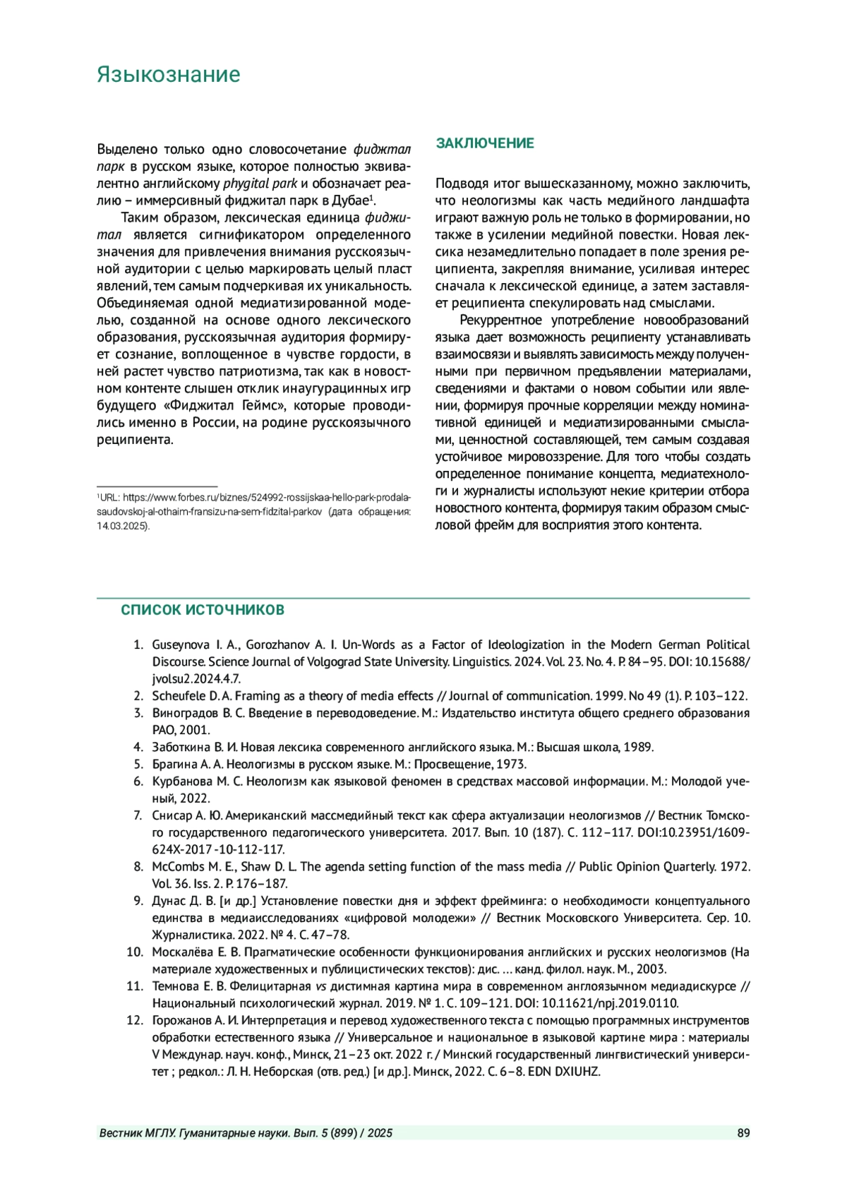 6. Курбанова М. С. Неологизм как языковой феномен в средствах массовой информации. М.: Молодой ученый, 2022.