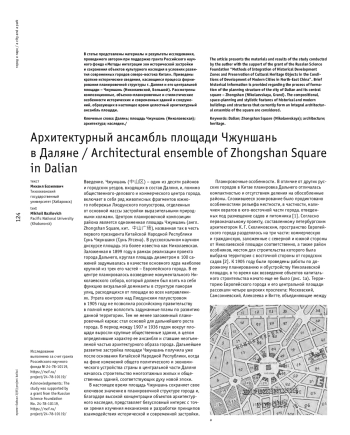 В статье представлены материалы и результаты исследования, проводимого автором при поддержке гранта Российского научного фонда «Методы интеграции зон исторической застройки и сохранения объектов культурного наследия в условиях развития современных городов северо-востока Китая». Приведены краткие исторические сведения, касающиеся процесса формирования планировочной структуры г. Даляня и его центральной площади - Чжуншань (Николаевской, Большой). Рассмотрены композиционные, объемно-планировочные и стилистические особенности исторических и современных зданий и сооружений, образующих в настоящее время целостный архитектурный ансамбль площади.