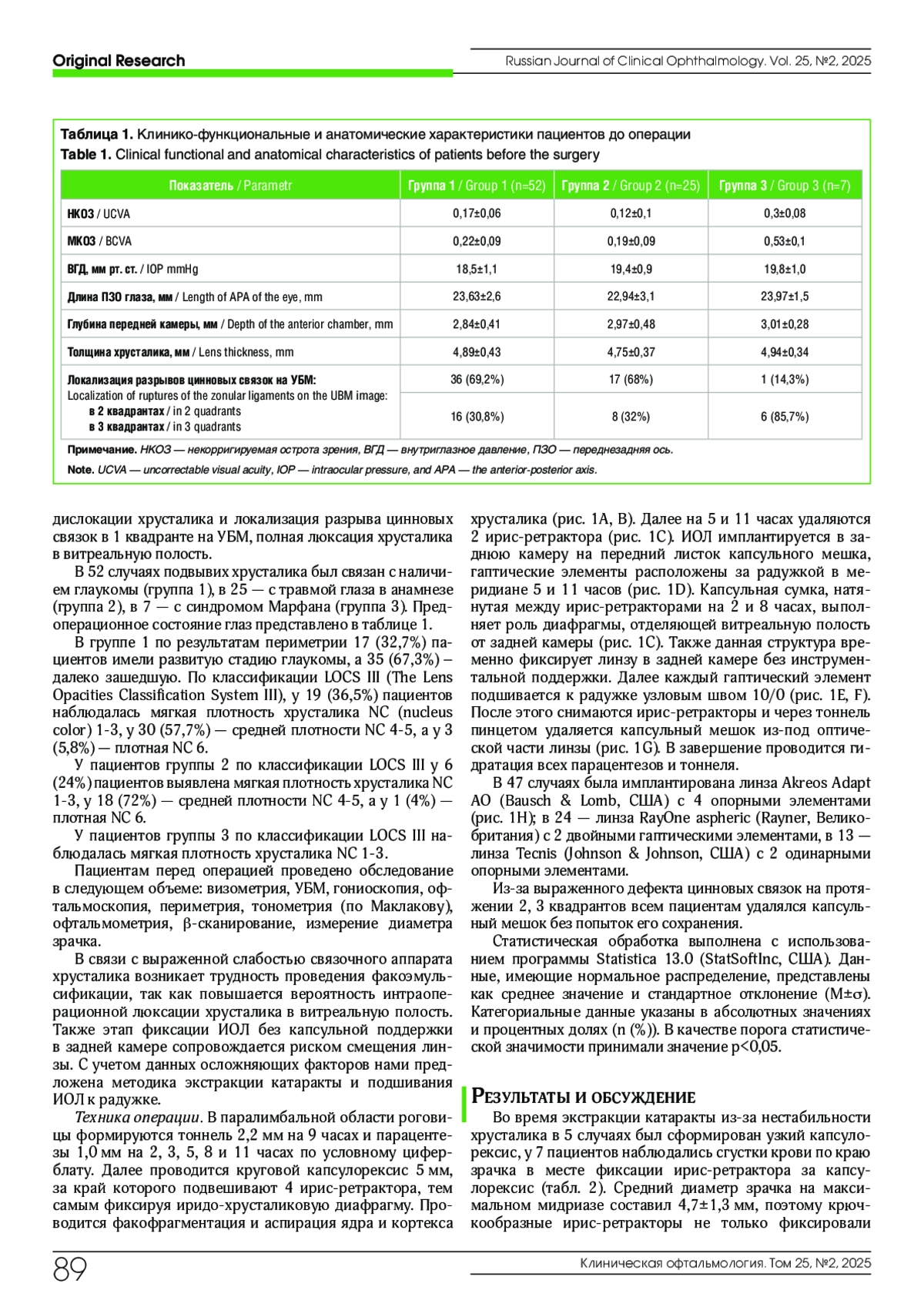 5. Jacqueline N., Behshad S., Farid M. Review of surgical techniques for posterior chamber intraocular lens fixation in the absence of capsular lens support. US Ophthalmic Review. 2015;8(2):86-91. DOI: 10.17925/USOR.2015.08.02.86