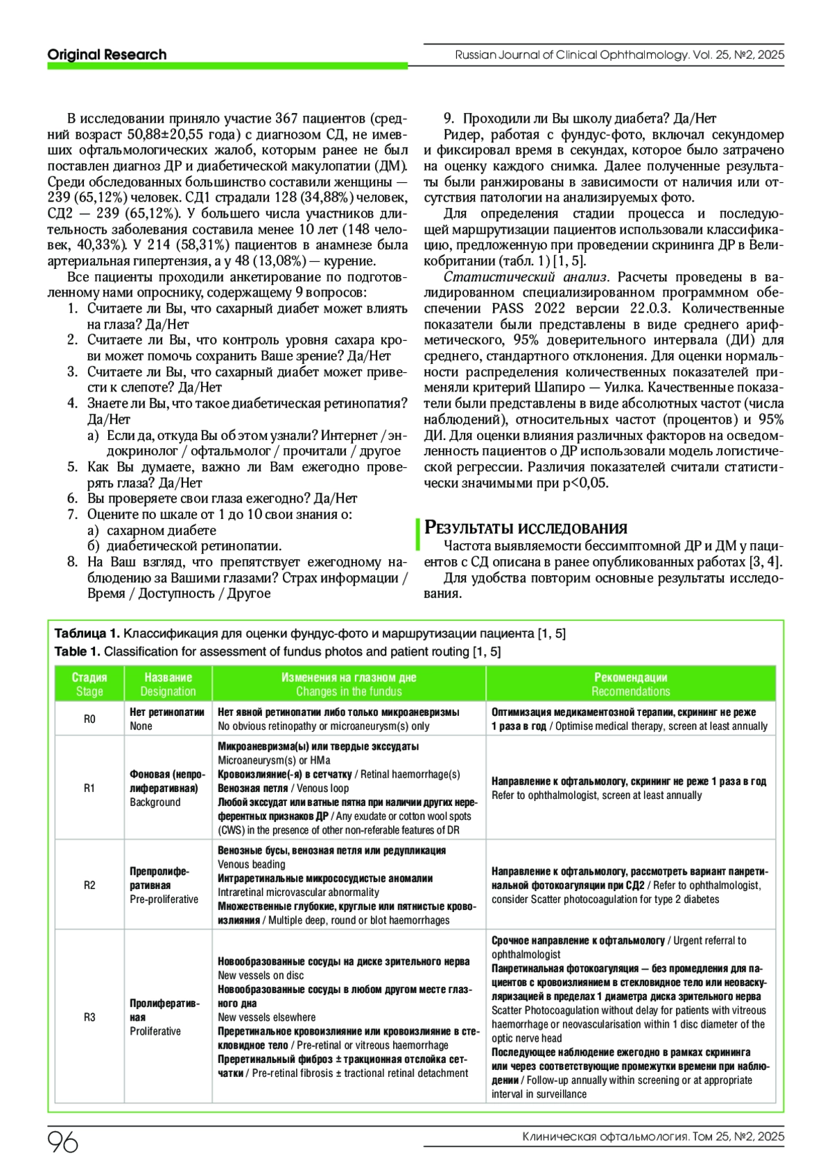 11. Silva P.S., Cavallerano J.D., Sun J.K. et al. Disparities Between Teleretinal Imaging Findings and Patient-Reported Diabetic Retinopathy Status and Follow-up Eye Care Interval: A 10-Year Prospective Study. Diabetes Care. 2024;47(6):970-977. 10.2337/ dc23-2282. DOI: 10.2337/dc23-2282