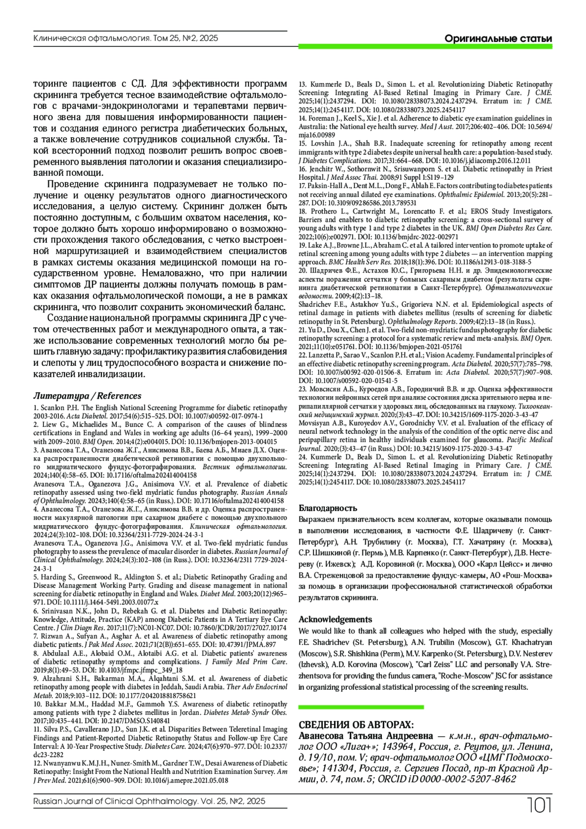 1. Scanlon P.H. The English National Screening Programme for diabetic retinopathy 2003-2016. Acta Diabetol. 2017;54(6):515-525. DOI: 10.1007/s00592-017-0974-1