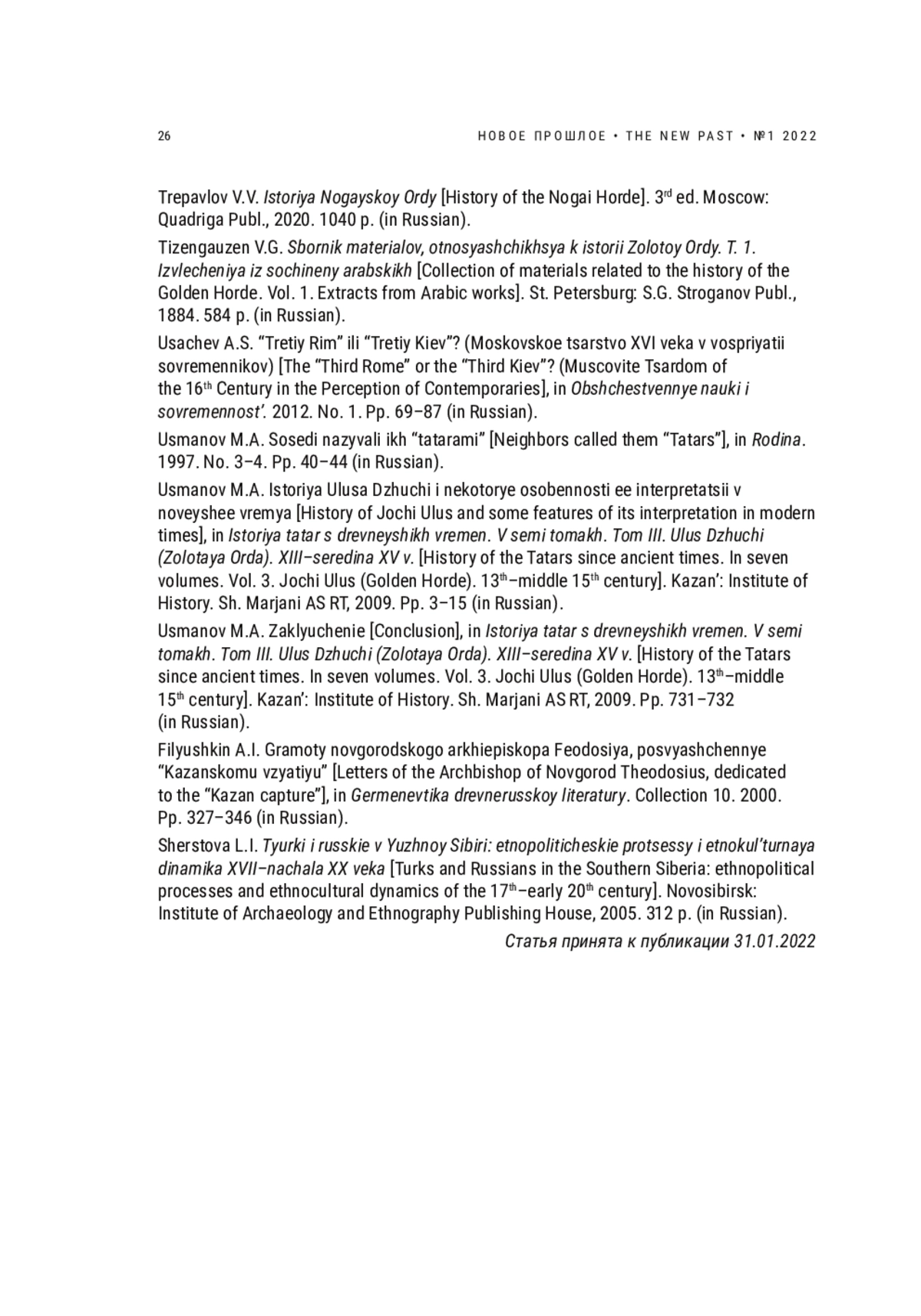 18. История татар с древнейших времен в семи томах. Т. IV. Казань: Институт истории им. Ш. Марджани Академии наук Республики Татарстан, 2014. 1080 с. EDN: VTLUDP