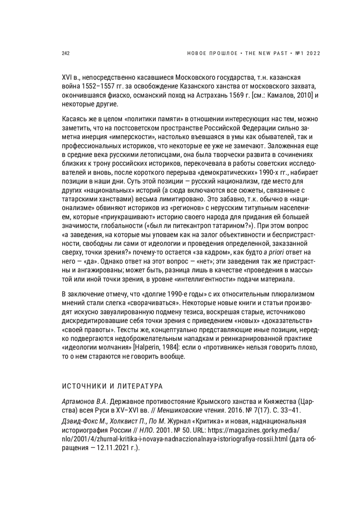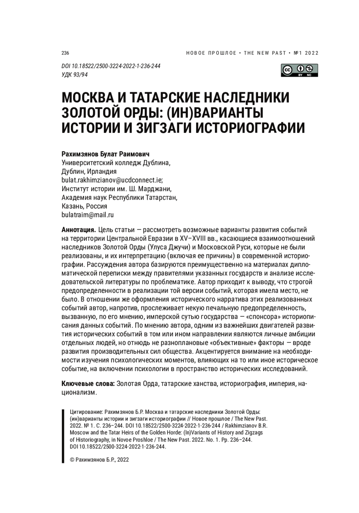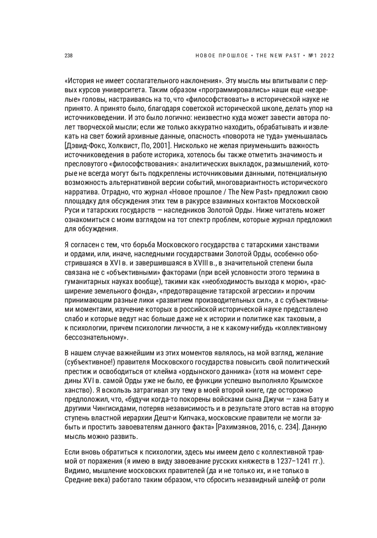 РАХИМЗЯНОВ Б. Р. МОСКВА И ТАТАРСКИЕ НАСЛЕДНИКИ ЗОЛОТОЙ ОРДЫ: (ИН)ВАРИАНТЫ ИСТОРИИ И ЗИГЗАГИ ИСТОРИОГРАФИИ // НОВОЕ ПРОШЛОЕ. 2022. № 1