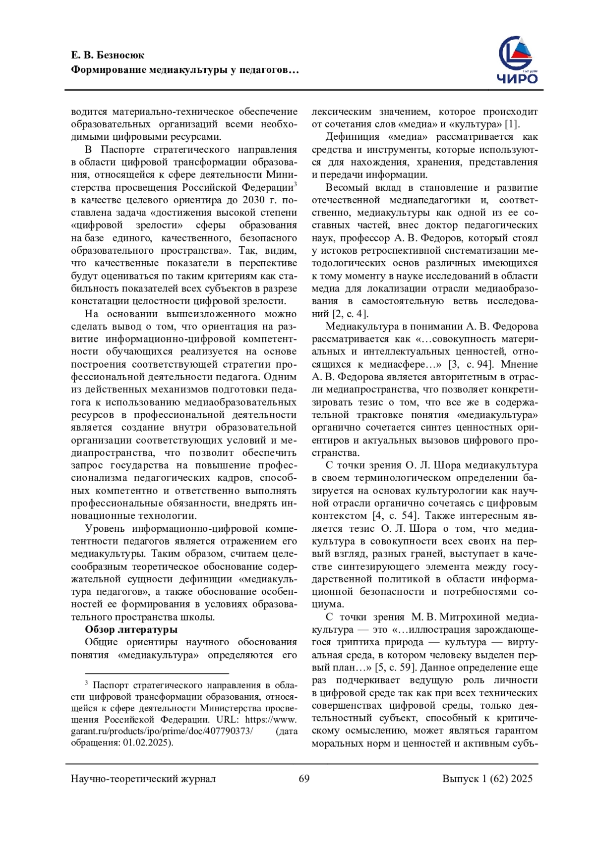 2. Федоров, А. В. Медиаобразование и медиаграмотность / А. В. Федоров. - Таганрог: Изд-во Кучма, 2004. - 340 c. - Текст: непосредственный. EDN: PZDSML