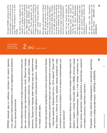 25 февраля 2025 в Иркутском доме архитекторов прошел Дискус‑ сионный клуб ПБ по теме номера. Модератор – Константин Лидин. Участники обсуждали проблемы городской динамики и вопросы туризма на Байкале, сохранности архитектурного наследия, про‑ тиворечивости современных потоков и их сложности.