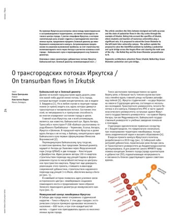 На примере Иркутска рассмотрены связи между проектируемыми и застраивающимися территориями, состояние пешеходных потоков в центре города. С учетом специфики Иркутска, в котором значительную роль играют студенты и преподаватели многочисленных вузов, предложено продлить Зеленый диаметр до левобережного межвузовского кампуса. Актуализировано предложение по решению выявленной проблемы за счет строительства велопешеходного моста через Ангару и расчистки основных осей города - Байкальского луча и перпендикулярного ему Зеленого диаметра.