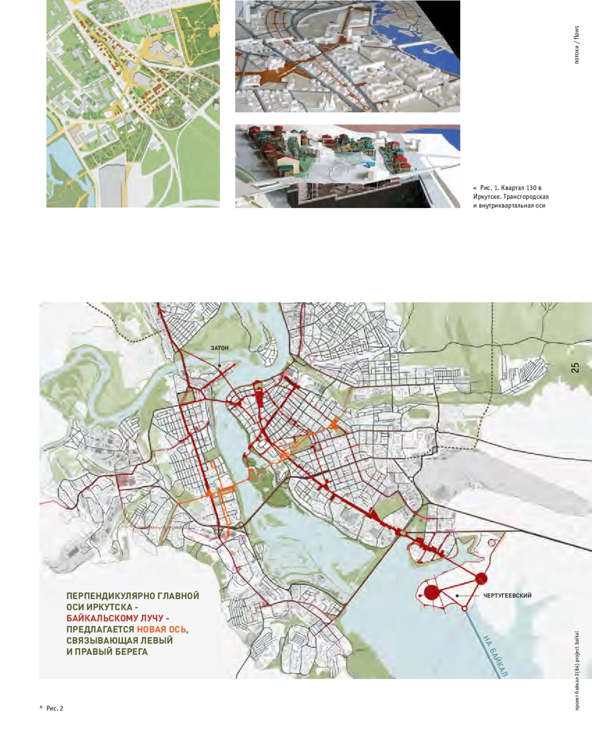 Байкальский луч и Зеленый диаметр Далеко не всякий город выстроен вдоль дороги, реки или какой‑либо другой линии потока. Есть города, которые выглядят скорее концентрически, как в модели Э. Берджеса [1]. Но в любом случае в структуре города можно (и нужно) видеть оси, вдоль которых движутся транспортные и человеческие потоки. Состояние этих осей, их непрерывность и пропускная способность во многом определяют состояние города в целом.