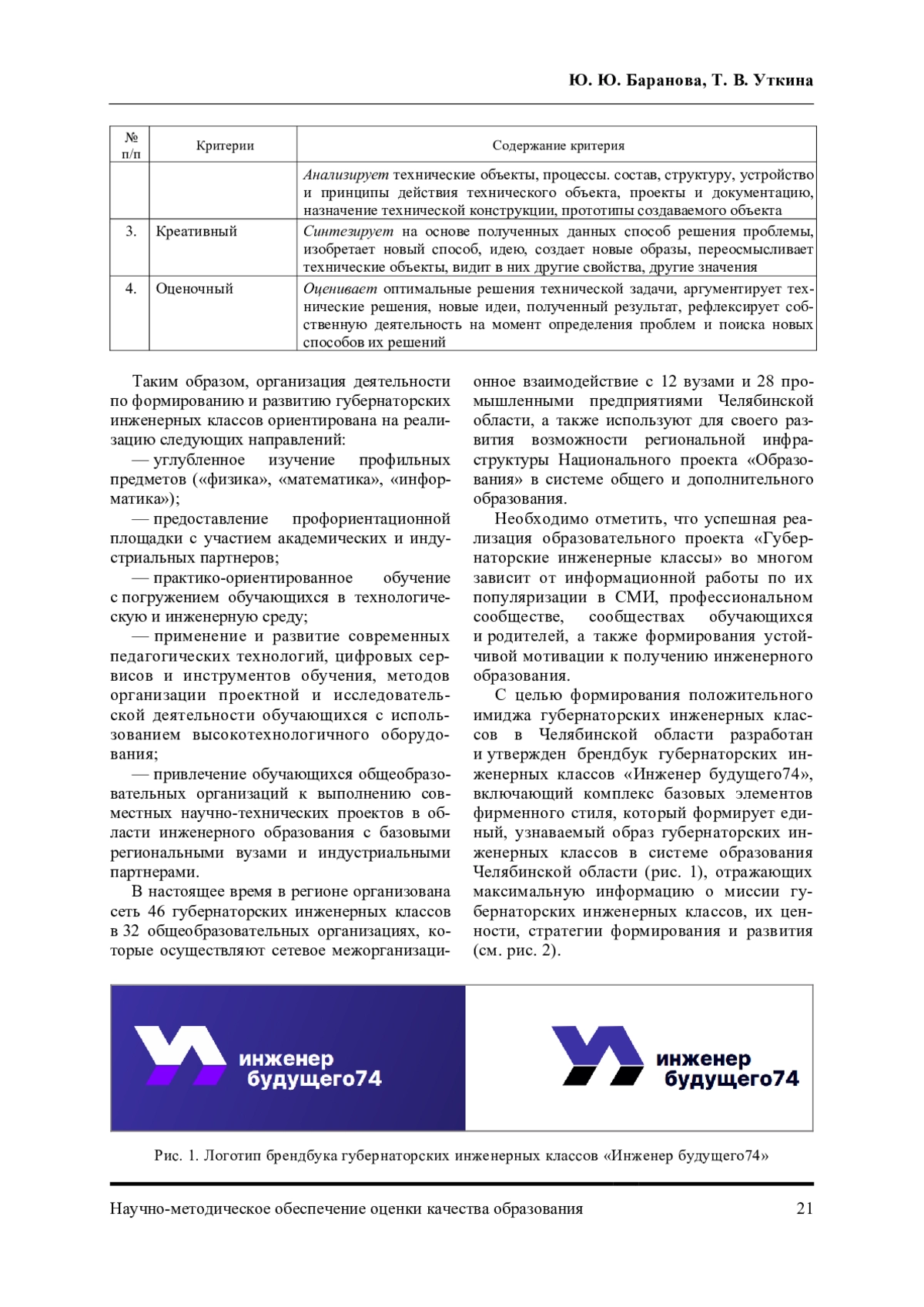1. Об утверждении Модели формирования и развития губернаторских инженерных классов в системе образования Челябинской области (“Инженер будущего”): приказ Министерства образования и науки Челябинской области от 04.08.202 № 02/1941.- URL: https://base.garant.ru/407498539/(дата обращения: 12.12.2024).