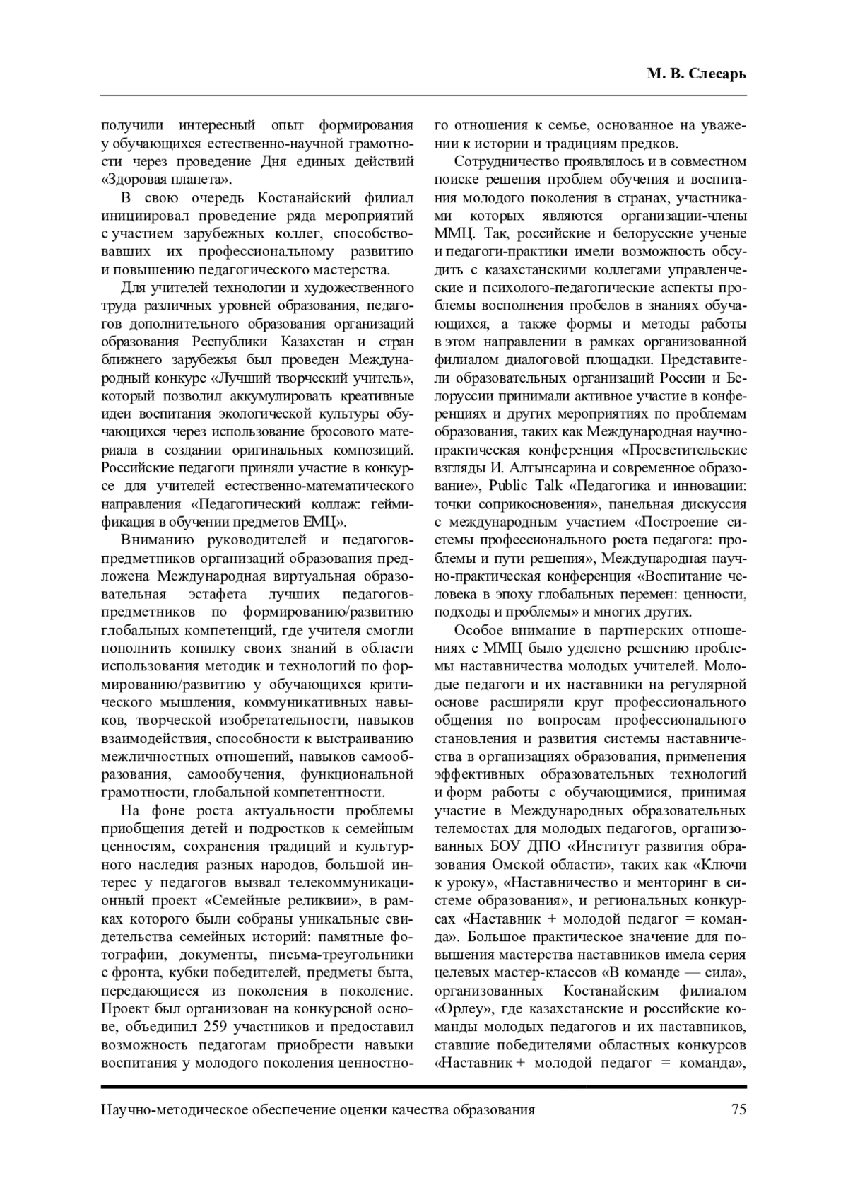 Статья посвящена итогам эффективного сотрудничества педагогических сообществ России, Казахстана и Беларуси в рамках деятельности Международного методического центра «Академия педагогического мастерства: навыки XXI века». В статье описаны значимые мероприятия, проведенные в рамках проекта «Серіктестер» - «Единомышленники». Отдельное внимание в статье уделено успешной реализации курсов повышения квалификации для учителей русского языка и литературы, проведению международных онлайн-олимпиад для учителей, в которых приняли участие более 6000 педагогов из трех стран. Важную роль в развитии международного взаимодействия играют ежегодные форумы педагогов, которые стали платформой для обсуждения качества образования, обмена идеями и лучшими практиками. В заключение статья подчеркивает важность продолжения активного сотрудничества между педагогическими сообществами трех стран. Объединенные общей целью - воспитанием достойных граждан, - учителя России, Казахстана и Беларуси продолжают развивать профессиональные навыки, обмениваться опытом и укреплять международные связи.