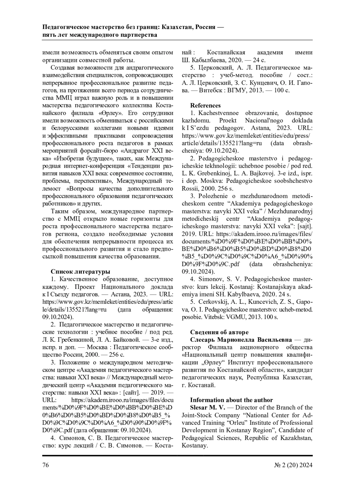 4. Симонов, С. В. Педагогическое мастерство: курс лекций / С. В. Симонов. - Костанай: Костанайская академия имени Ш. Кабылбаева, 2020. - 24 с.