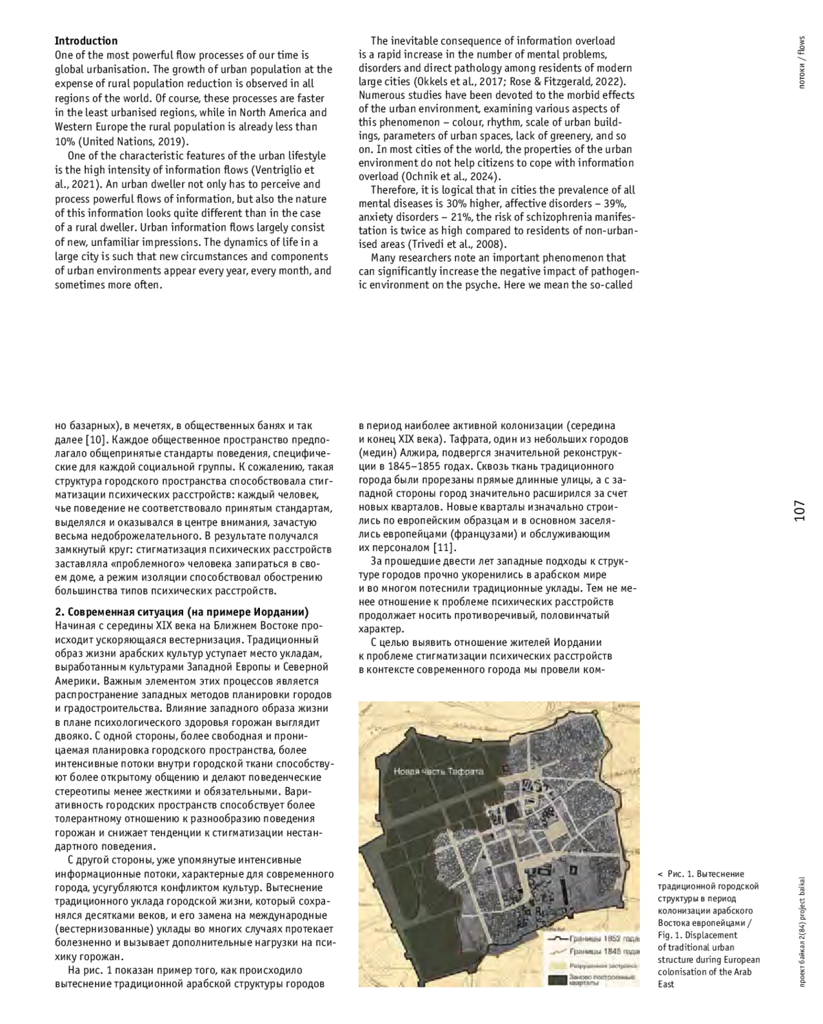 Глобальная урбанизация вынуждает значительные массы людей переходить от традиционного уклада к жизни в современном городе. Мощные информационные потоки и динамика города способствуют развитию психических расстройств. Структура традиционного арабского города препятствовала росту психических перегрузок. В результате в традиционной арабской культуре укоренилась стигматизация психических расстройств - отношение к ним как к проклятию или заразной болезни. Вестернизация современных арабских городов сопровождается двоякими эффектами одновременного роста психических нагрузок и размыванием их стигматизации.