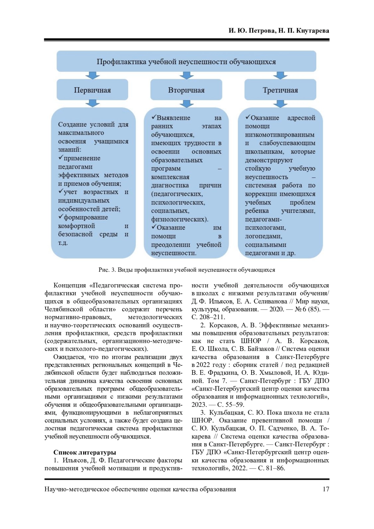 2. Корсаков, А. В. Эффективные механизмы повышения образовательных результатов: как не стать ШНОР / А. В. Корсаков, Е. О. Школа, С. В. Байзаков // Система оценки качества образования в Санкт-Петербурге в 2022 году: сборник статей / под редакцией В. Е. Фрадкина, О. В. Хмыловой, И. А. Юдиной. Том 7. - Санкт-Петербург: ГБУ ДПО “Санкт-Петербургский центр оценки качества образования и информационных технологий”, 2023. - С. 55-59. EDN: QUNHZK