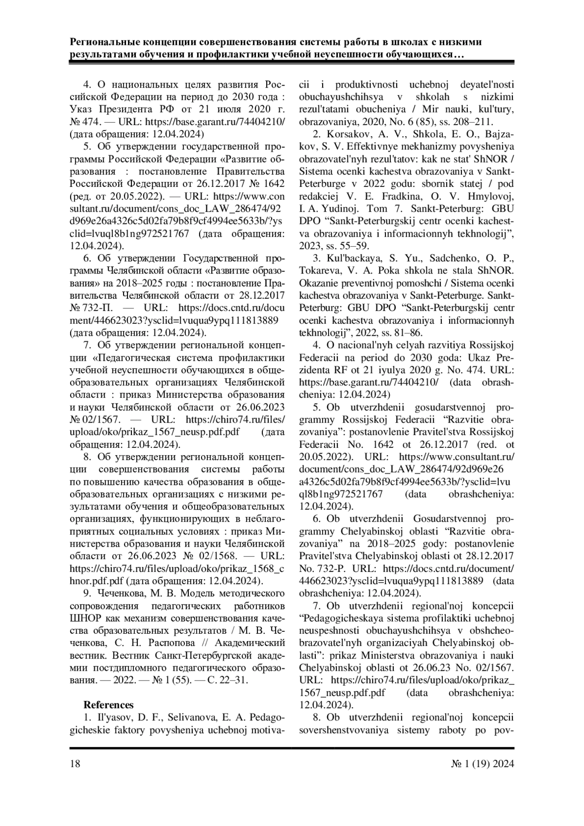 8. Об утверждении региональной концепции совершенствования системы работы по повышению качества образования в общеобразовательных организациях с низкими результатами обучения и общеобразовательных организациях, функционирующих в неблагоприятных социальных условиях: приказ Министерства образования и науки Челябинской области от 26.06.2023 № 02/1568. - URL: https://chiro74.ru/files/upload/oko/prikaz_1568_chnor.pdf.pdf(дата обращения: 12.04.2024).