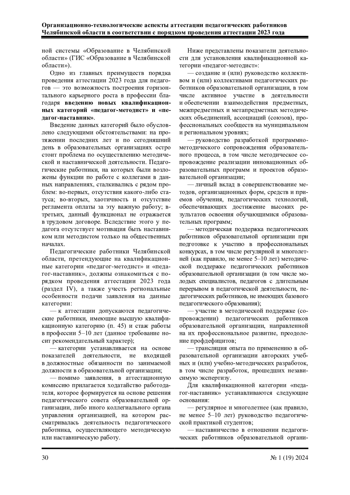 В статье рассматривается опыт Челябинской области по организационно-технологическому сопровождению аттестации педагогических работников на присвоение квалификационных категорий (первая, высшая) посредством использования информационной системы «Аттестация педагогических работников», а также технология аттестации педагогических работников в целях установления квалификационных категорий «педагог-методист» и «педагог-наставник» в соответствии с Порядком проведения аттестации педагогических работников 2023 года.