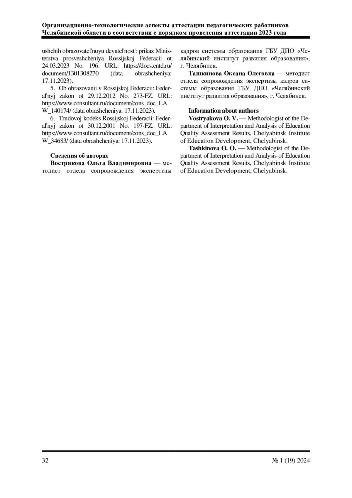 4. Порядок проведения аттестации педагогических работников организаций, осуществляющих образовательную деятельность: приказ Министерства просвещения Российской Федерации от 24.03.2023 № 196 - URL: https://docs.cntd.ru/document/1301308270(дата обращения: 17.11.2023).