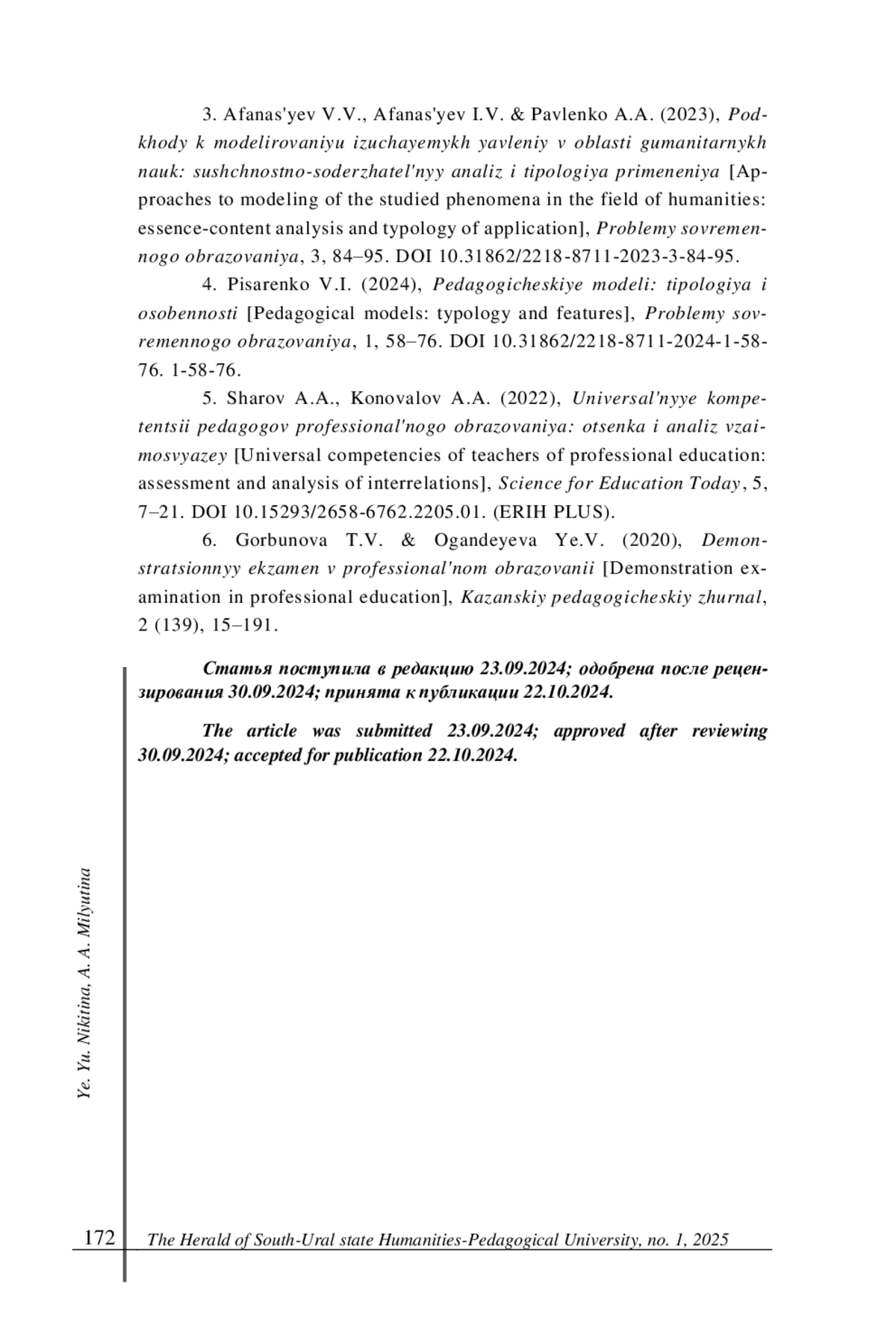 НИКИТИНА Е. Ю., МИЛЮТИНА А. А. ДЕМОНСТРАЦИОННЫЙ ЭКЗАМЕН ПО ДИСЦИПЛИНАМ МЕТОДИЧЕСКОГО БЛОКА: ОПЫТ ПОДГОТОВКИ И ПРОВЕДЕНИЯ // ВЕСТНИК ЮЖНО-УРАЛЬСКОГО ГОСУДАРСТВЕННОГО ГУМАНИТАРНО-ПЕДАГОГИЧЕСКОГО УНИВЕРСИТЕТА. 2025. № 1 (185)