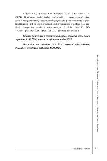 Результаты. Наполнение учебного процесса профессионально-педагогическим контекстом способствовало росту у будущих учителей иностранного языка hardskills и softskills, повышению уровня мотивации к профессиональной деятельности. Проведенное анкетирование подтвердило предположение о том, что проводимая работа формирует профессиональное целеполагание и оказывает влияние на личностный профессиональный рост обучающихся. Сформированная на должном уровне ассертивность дает возможность планомерно реализовывать поставленные цели, применять индивидуальный подход к обучающимся с учетом своих профессионально-педагогических принципов.