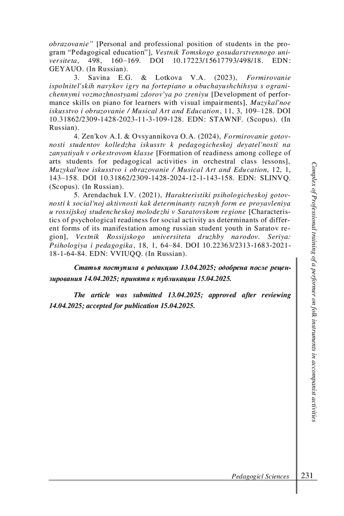 Статья: КОМПЛЕКС ПРОФЕССИОНАЛЬНОЙ ПОДГОТОВКИ ИСПОЛНИТЕЛЯ НА НАРОДНЫХ ИНСТРУМЕНТАХ В КОНЦЕРТМЕЙСТЕРСКОЙ ДЕЯТЕЛЬНОСТИ (2025)