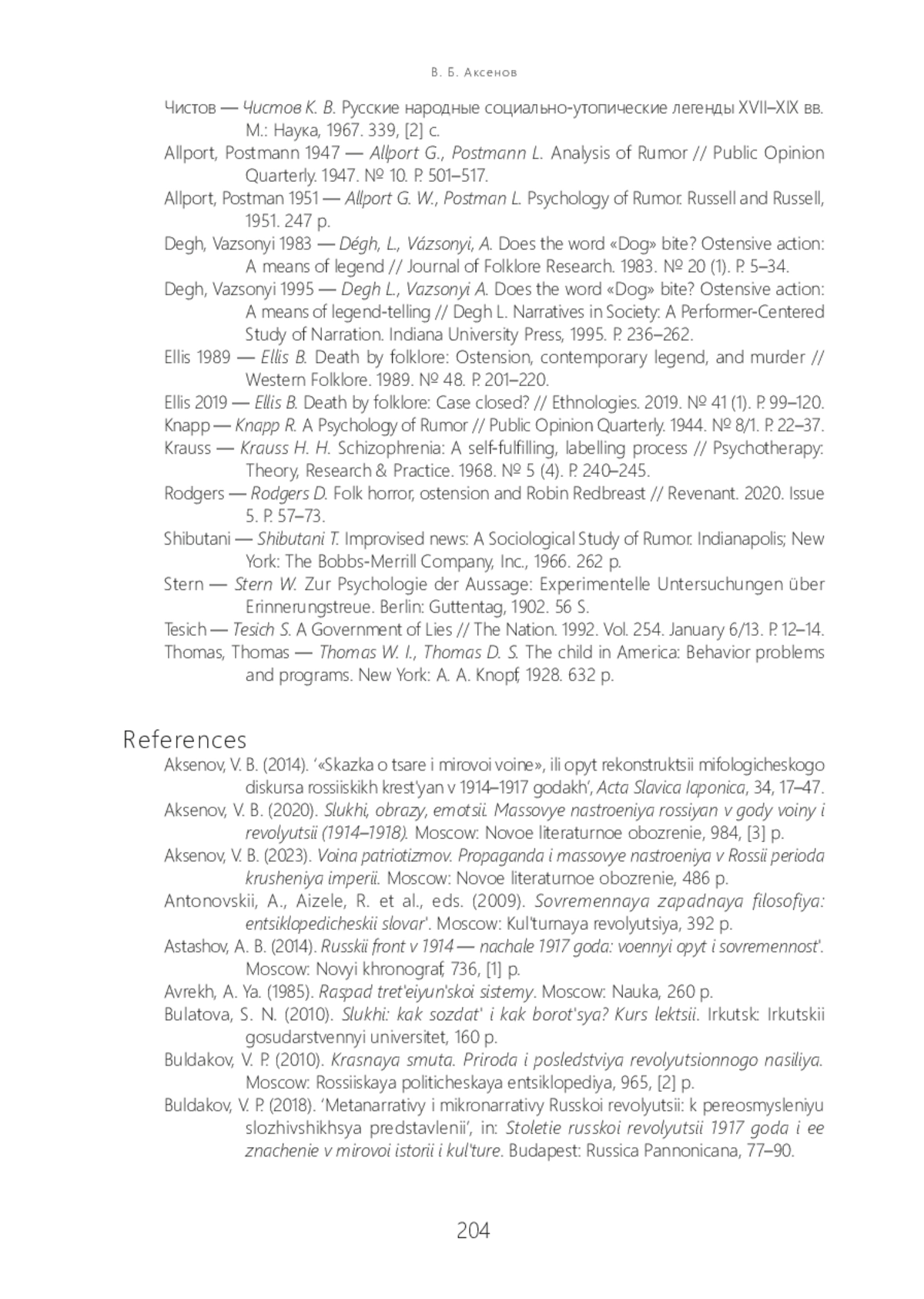 2. Аксенов В. Б. “Сказка о царе и мировой войне”, или опыт реконструк ции мифологического дискурса российских крестьян в 1914-1917 гг. // Acta Slavica Iaponica. 2014. Vol. 34. P. 17-47.