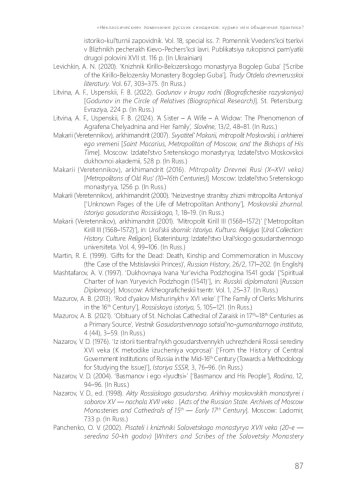 41. Левичкин А. Н. Книжник Кирилло-Белозерского монастыря Боголеп Губа // ТОДРЛ. СПб.: Наука, 2020. Т. 67. С. 303-375.